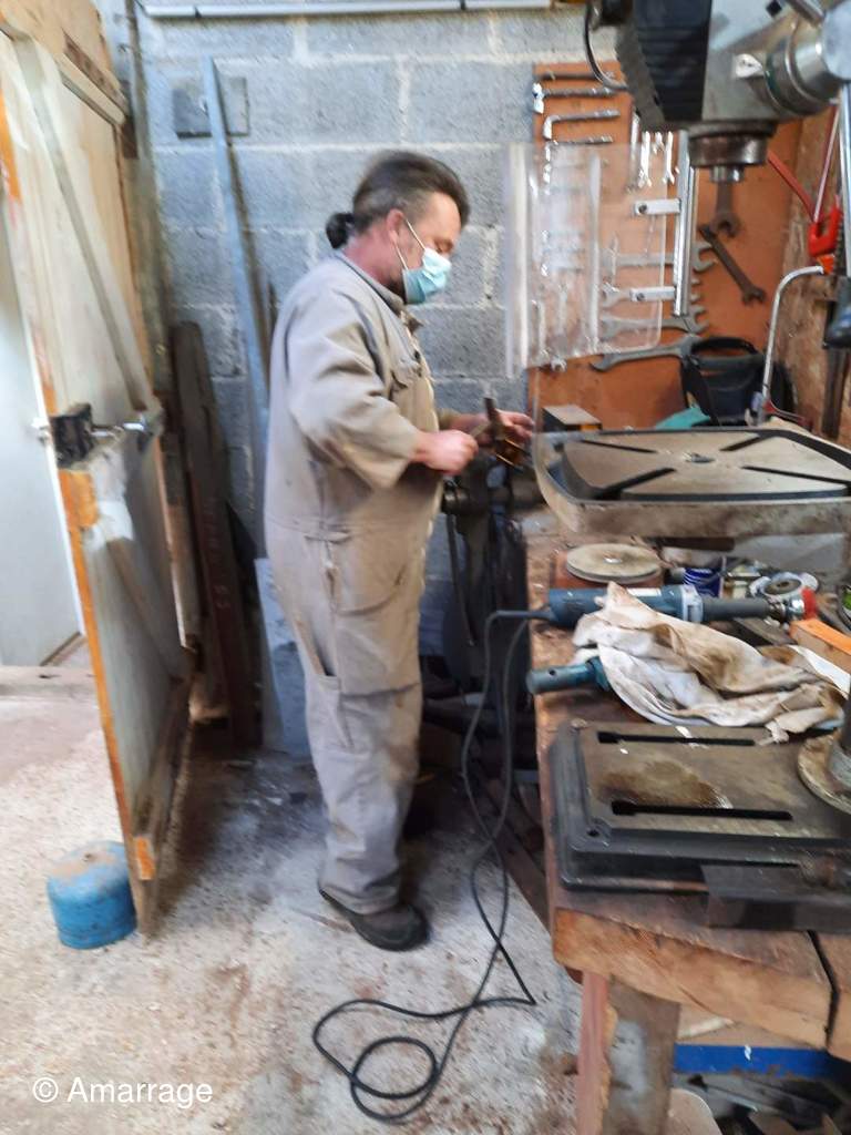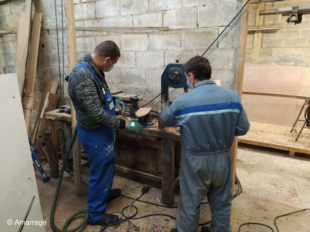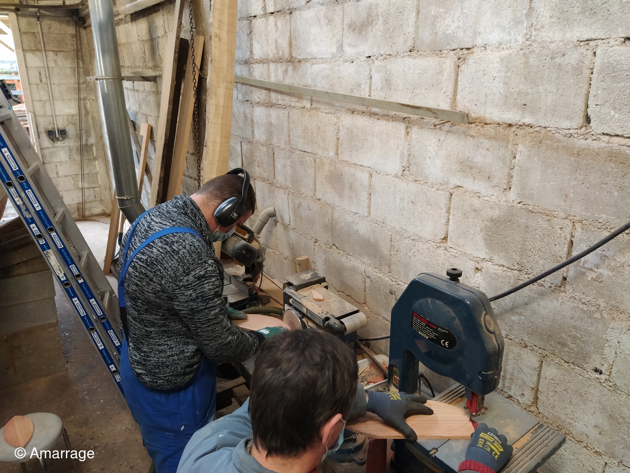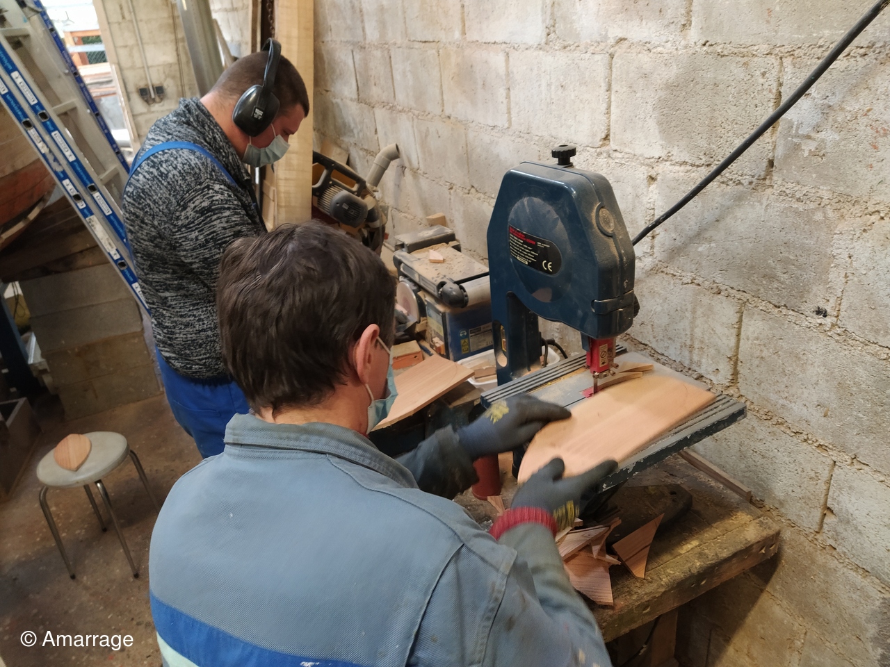 "ATELIER" travail sur un aviron (godille) fabrication de bateau jouet.