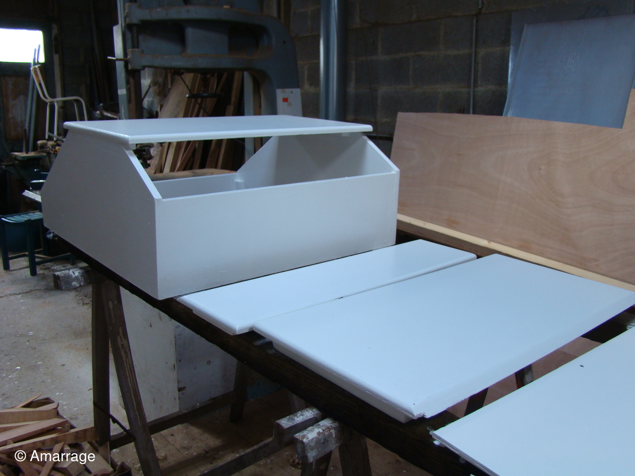 "ATELIER": le coffre du moteur de l'"AWASSA" à reçu sa couche de peinture laquée.