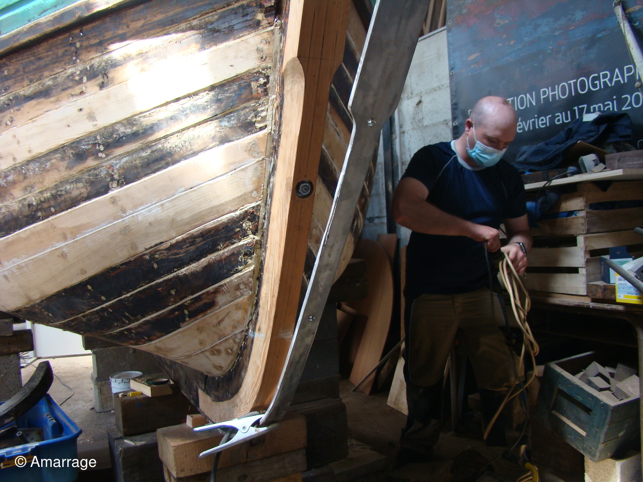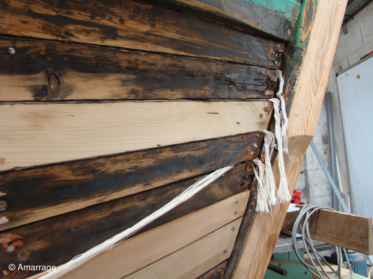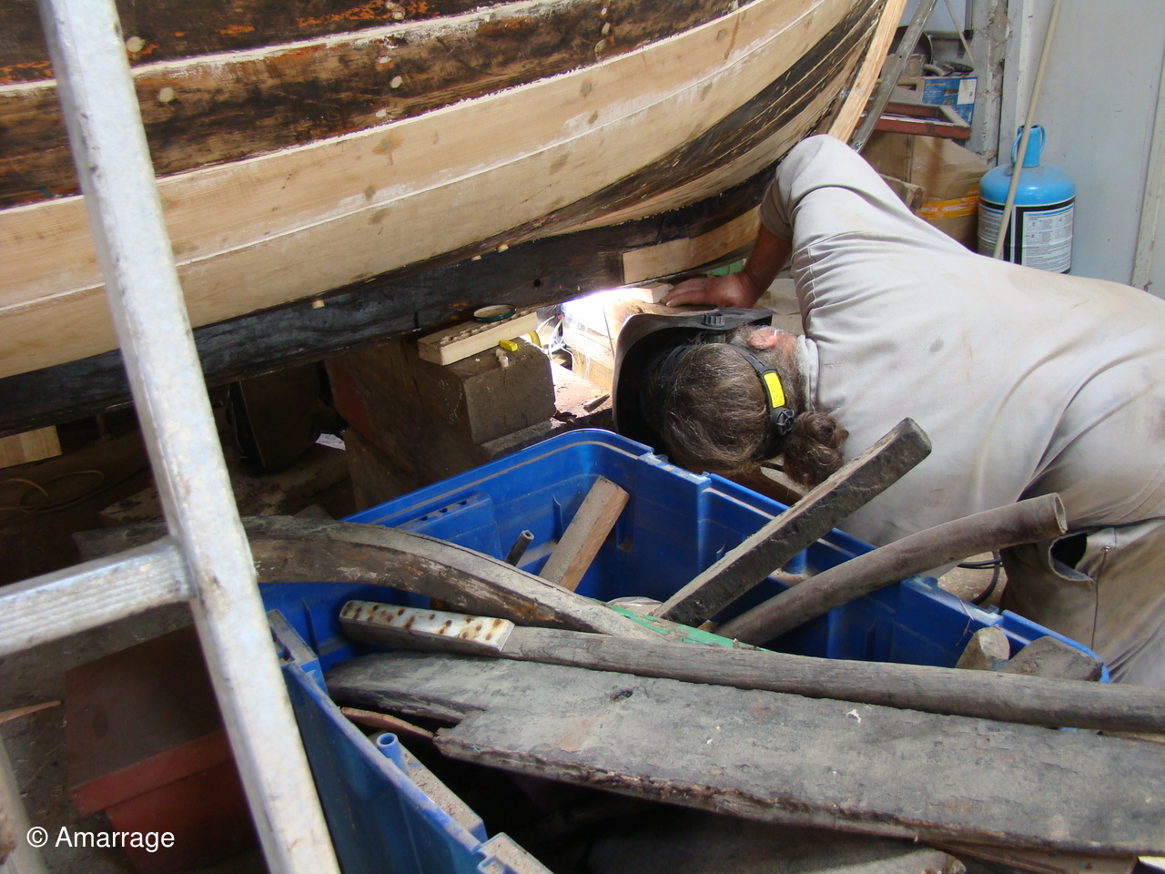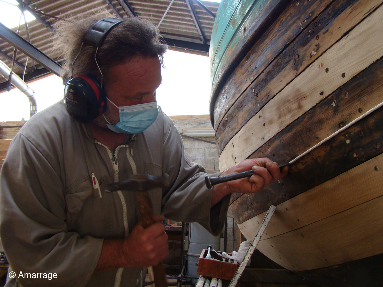 "CATHERINE PHILIPPE": sur tribord calfatage des bordés.