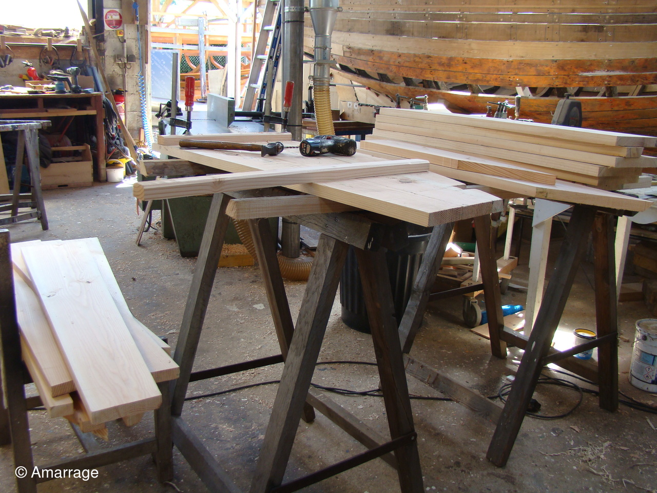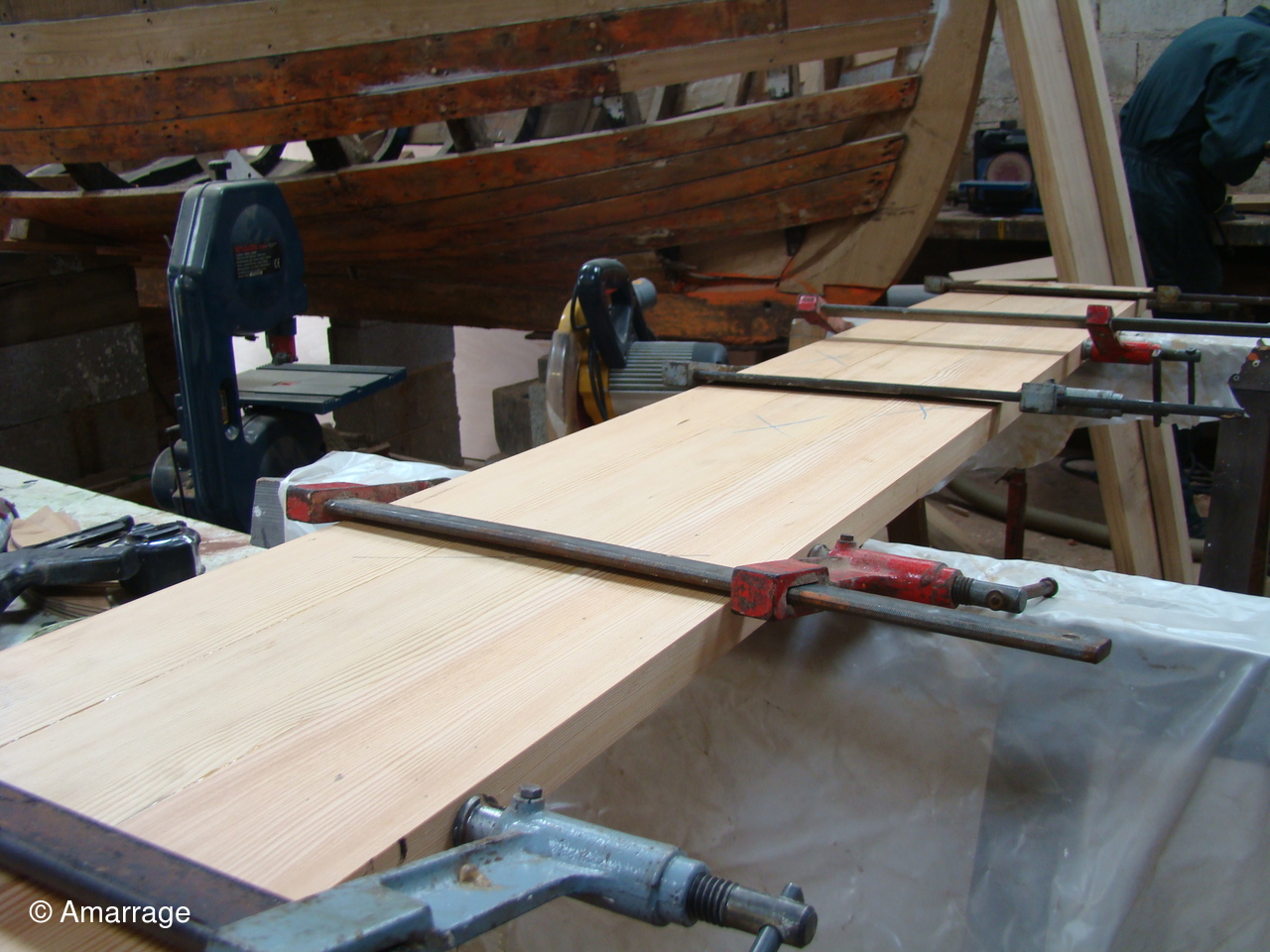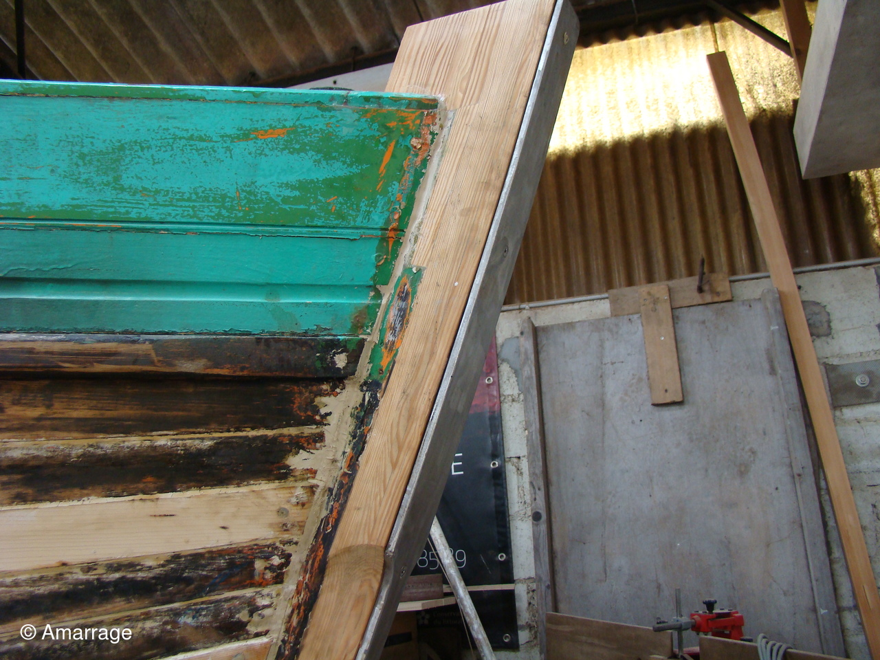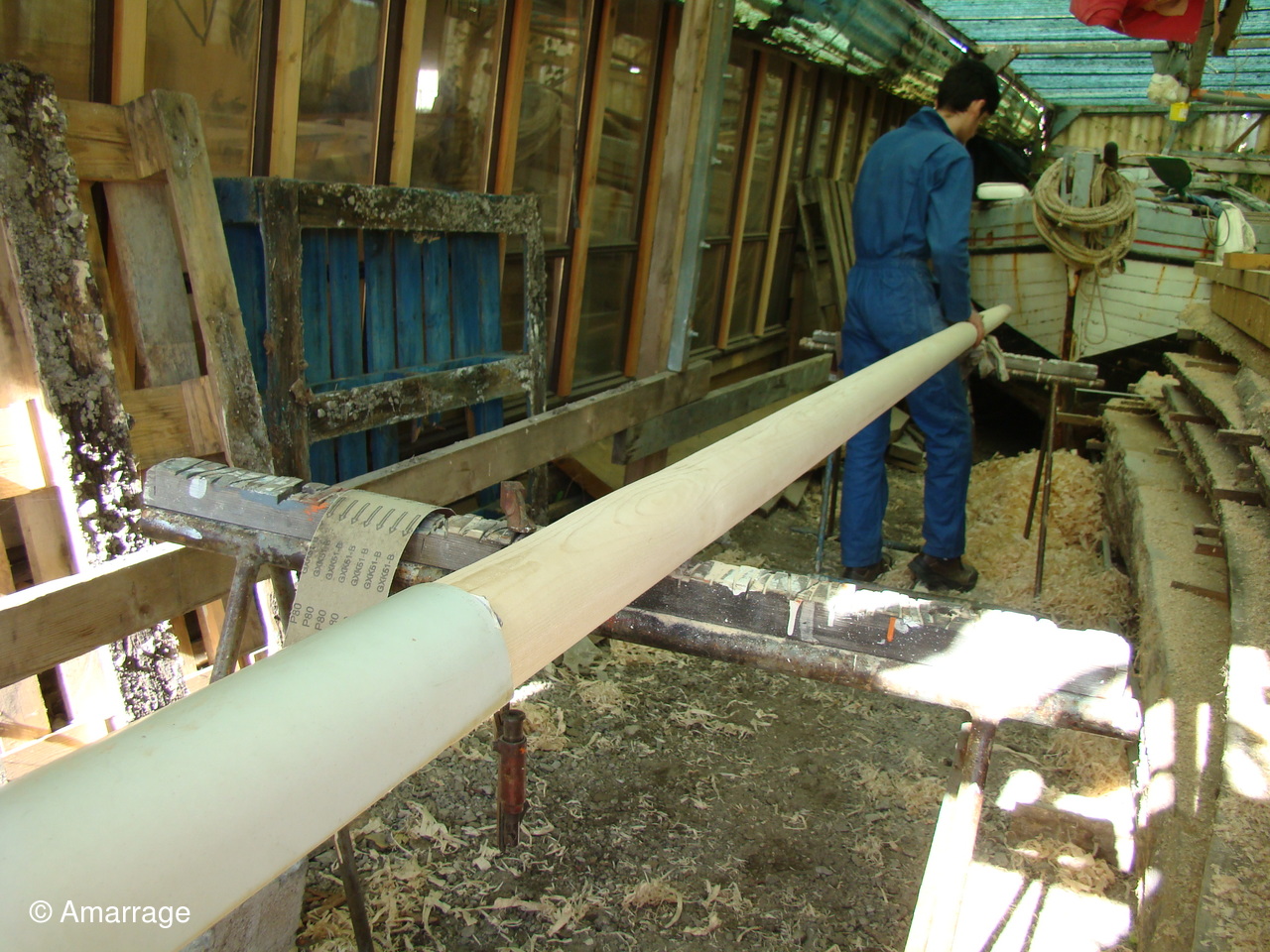 "CATHERINE PHILIPPE": sur tribord calfatage des bordés.