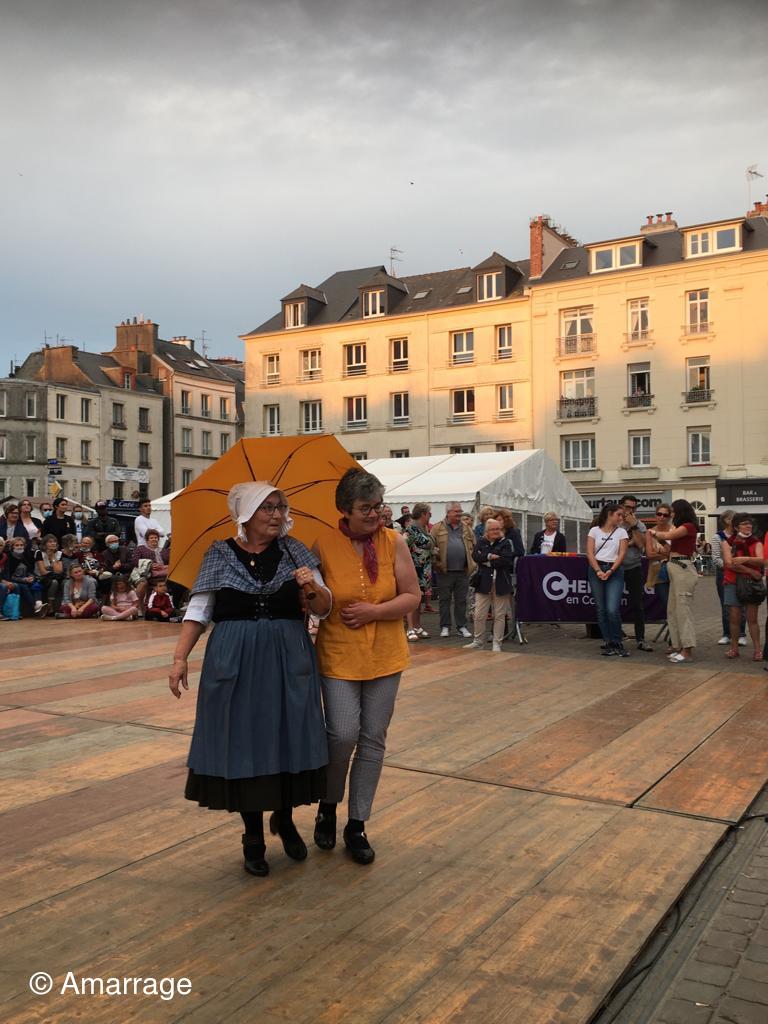 Ce samedi 25 septembre les associations Cherbourgeoises "LES GOUBLINS" et "AMARRAGE" s'étaient données rendez-vous place Charles de Gaulle en face du théatre de Cherbourg, pour une chorégraphie sur les "Grands évènements du port de Cherbourg à travers l'histoire.