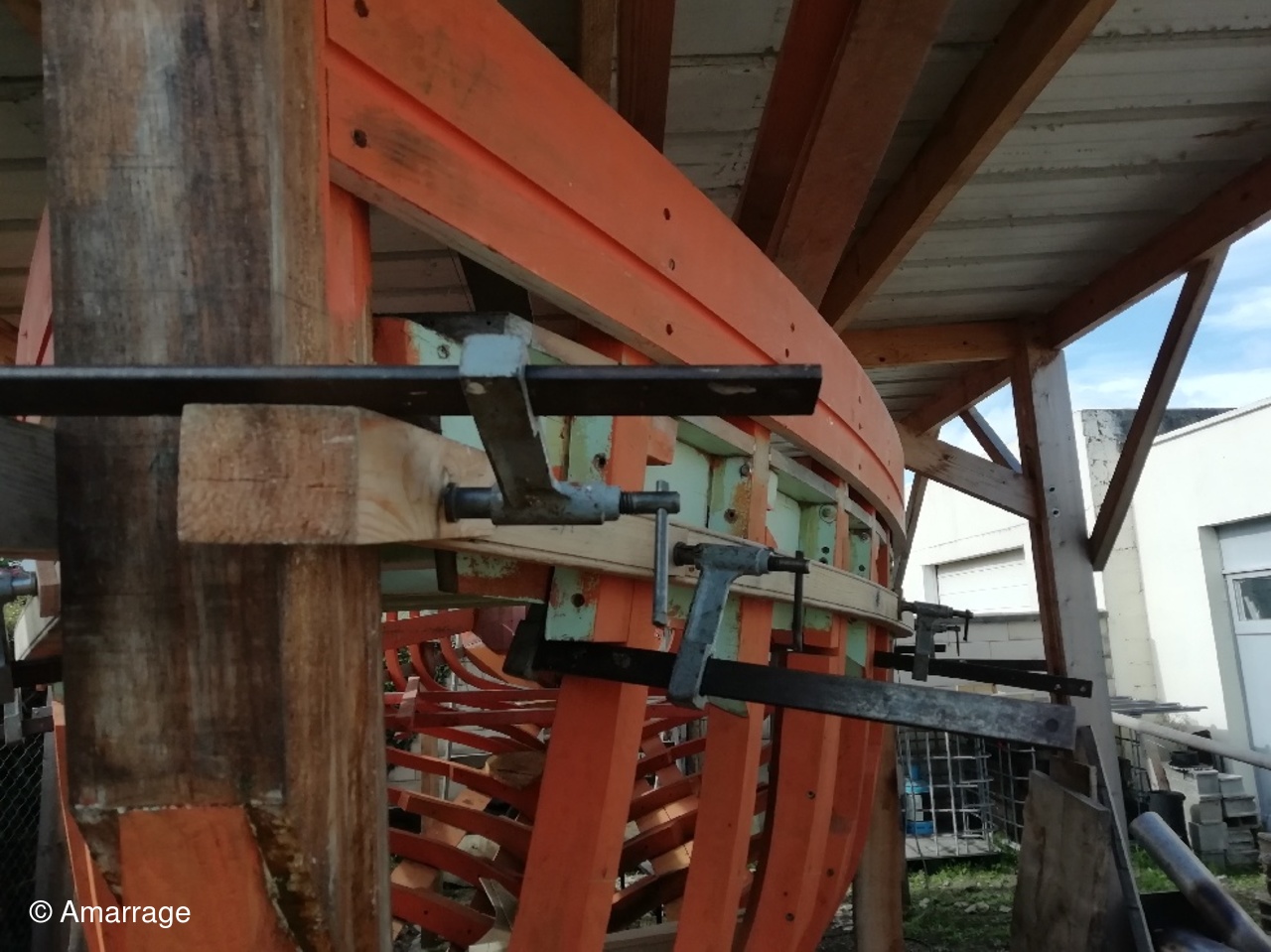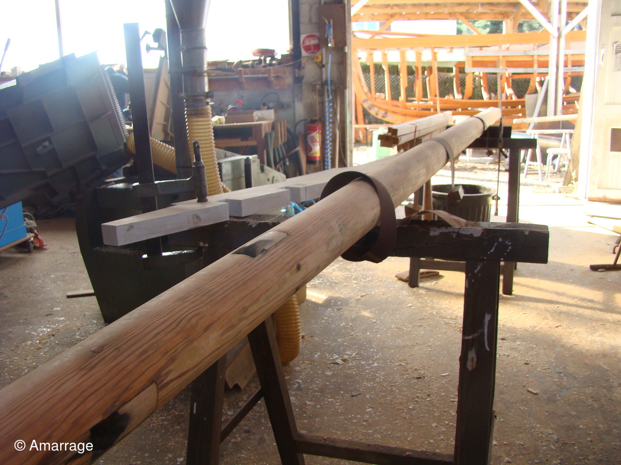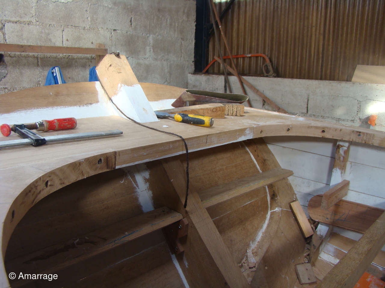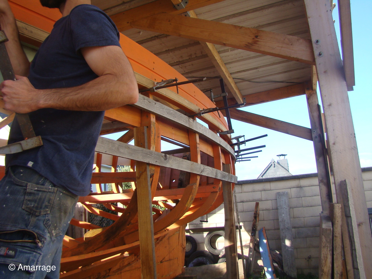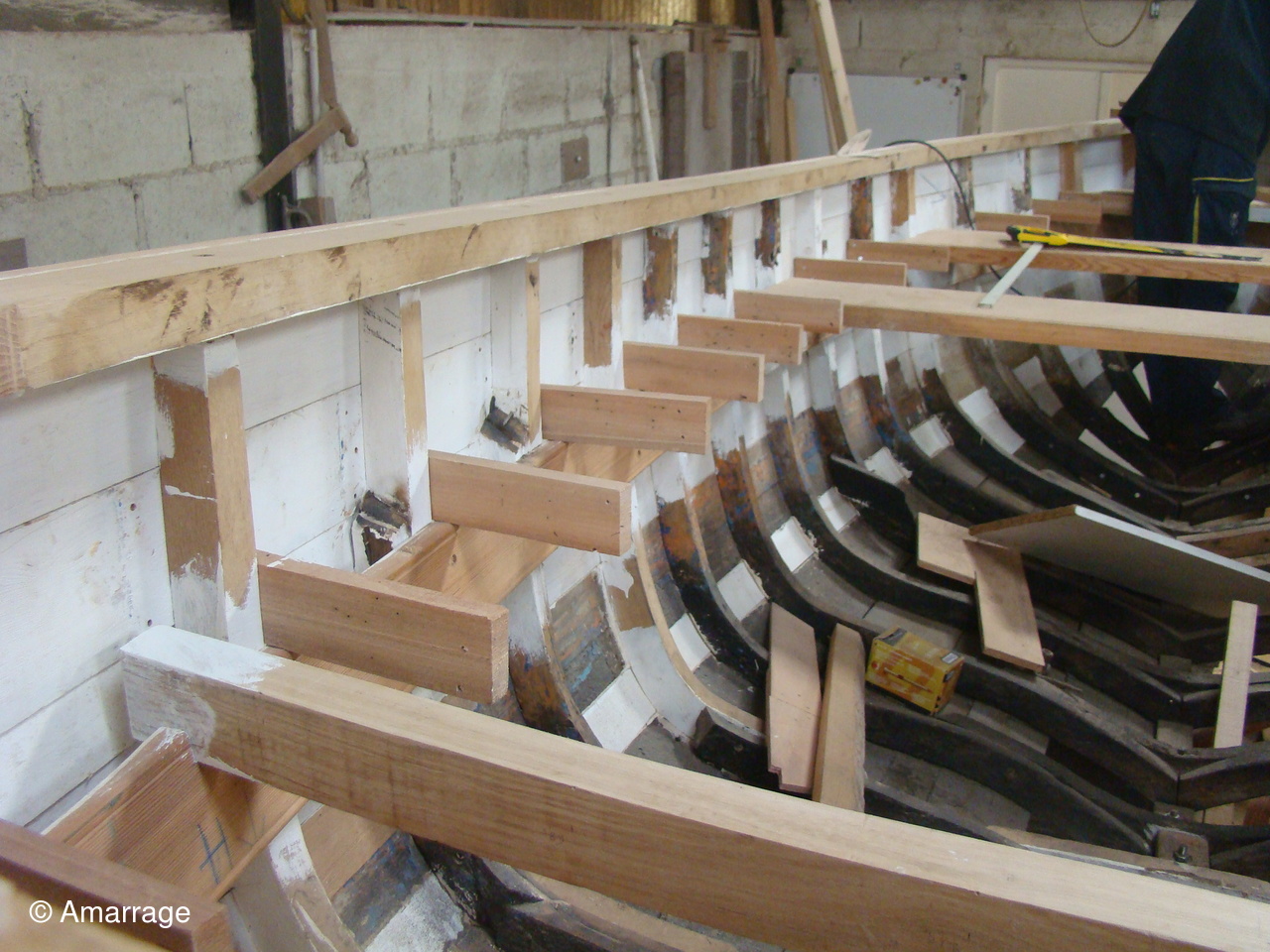 "MARIE-JOSEPH": le violon tribord est en place - préparation de celui de bâbord - préparation de la "coueffe".