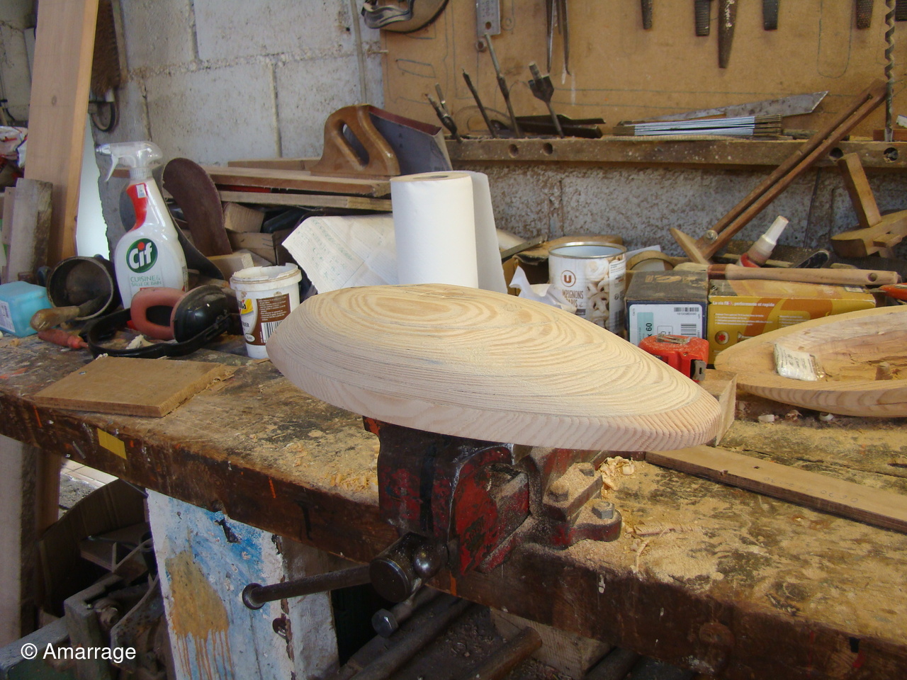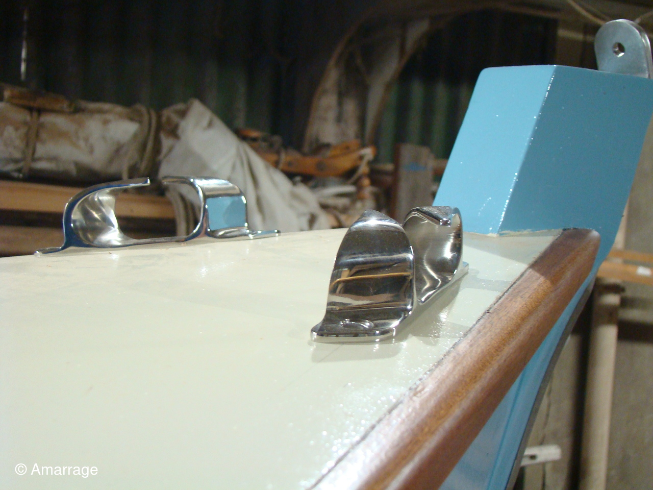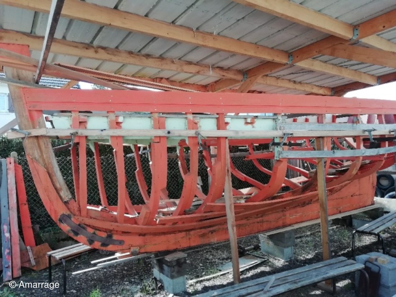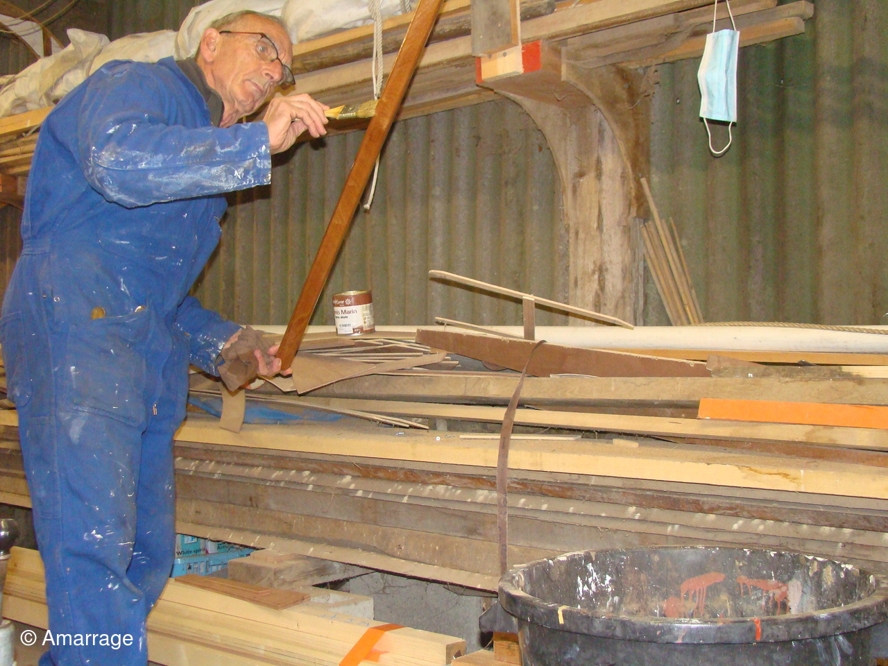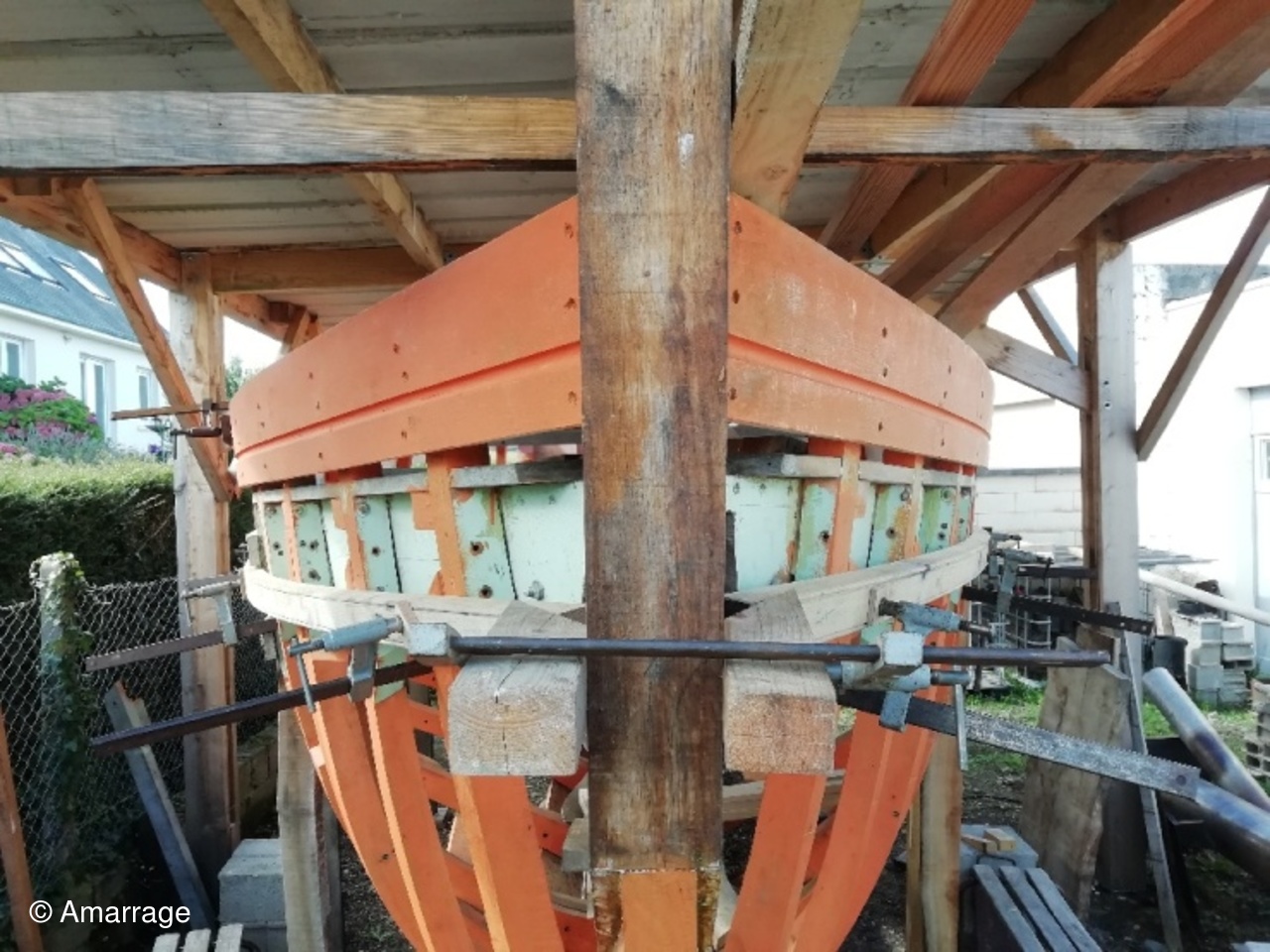 "MARIE-JOSEPH": le violon tribord est en place - préparation de celui de bâbord - préparation de la "coueffe".