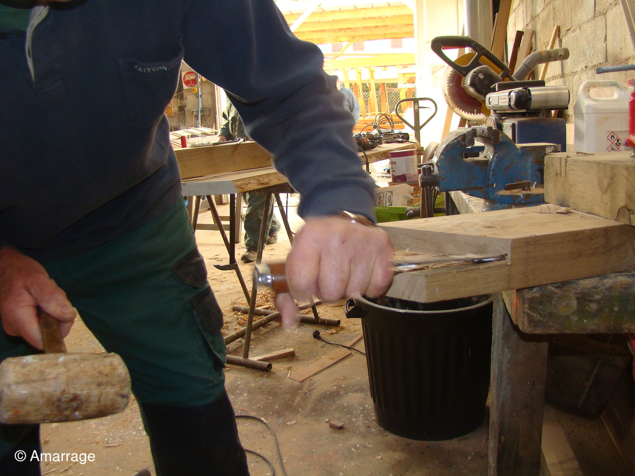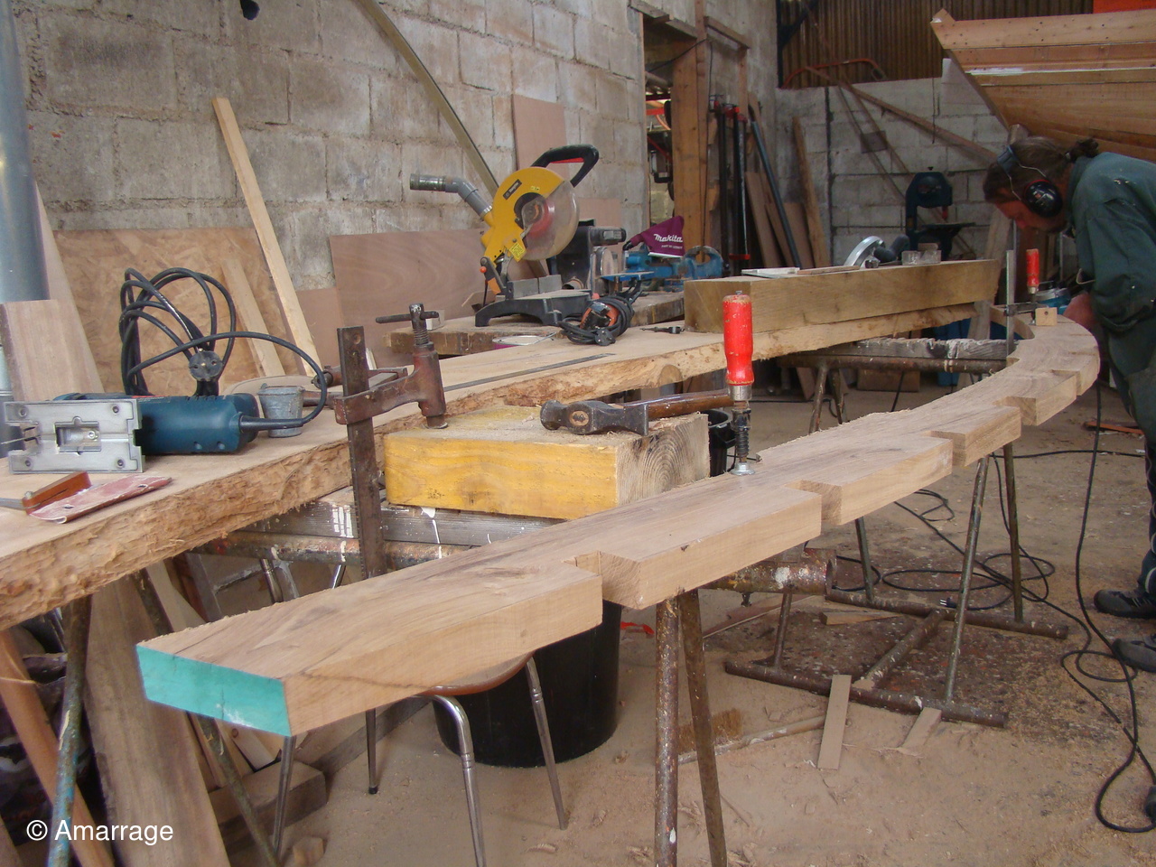 "À DIEU VA": étuvage des listons et présentation avant de les fixer.