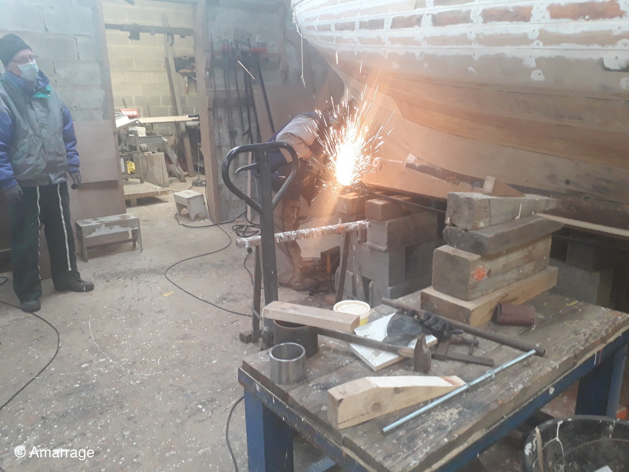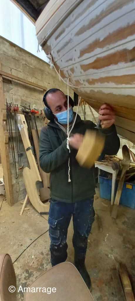 Olivier, Romain et les adhérents s'affairent sur les finitions de la Vaquelotte "MARIE JOSEPH".