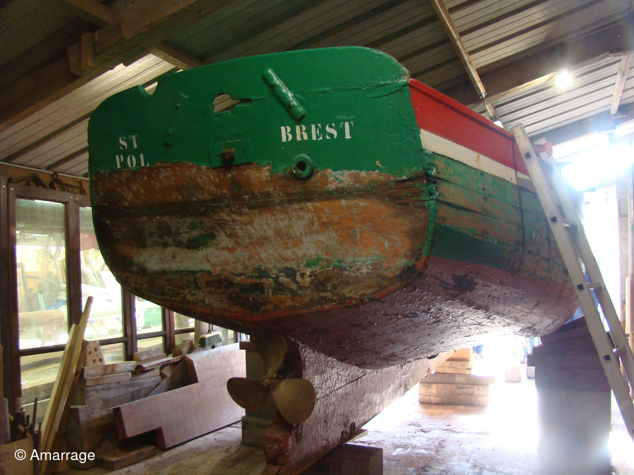 "SAINT POL" : l'arrière dépose sur son ber- grattage intérieur est extérieure coque.