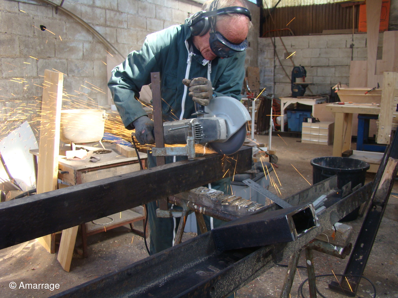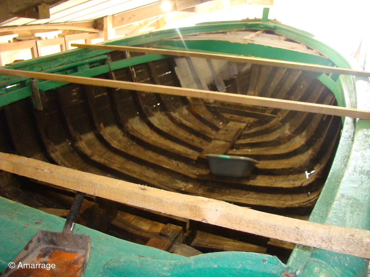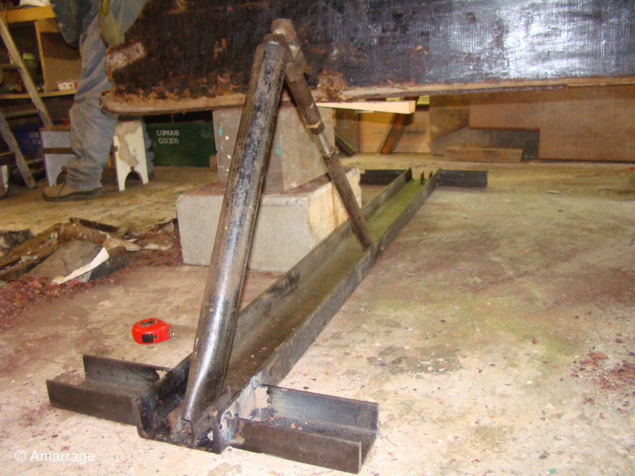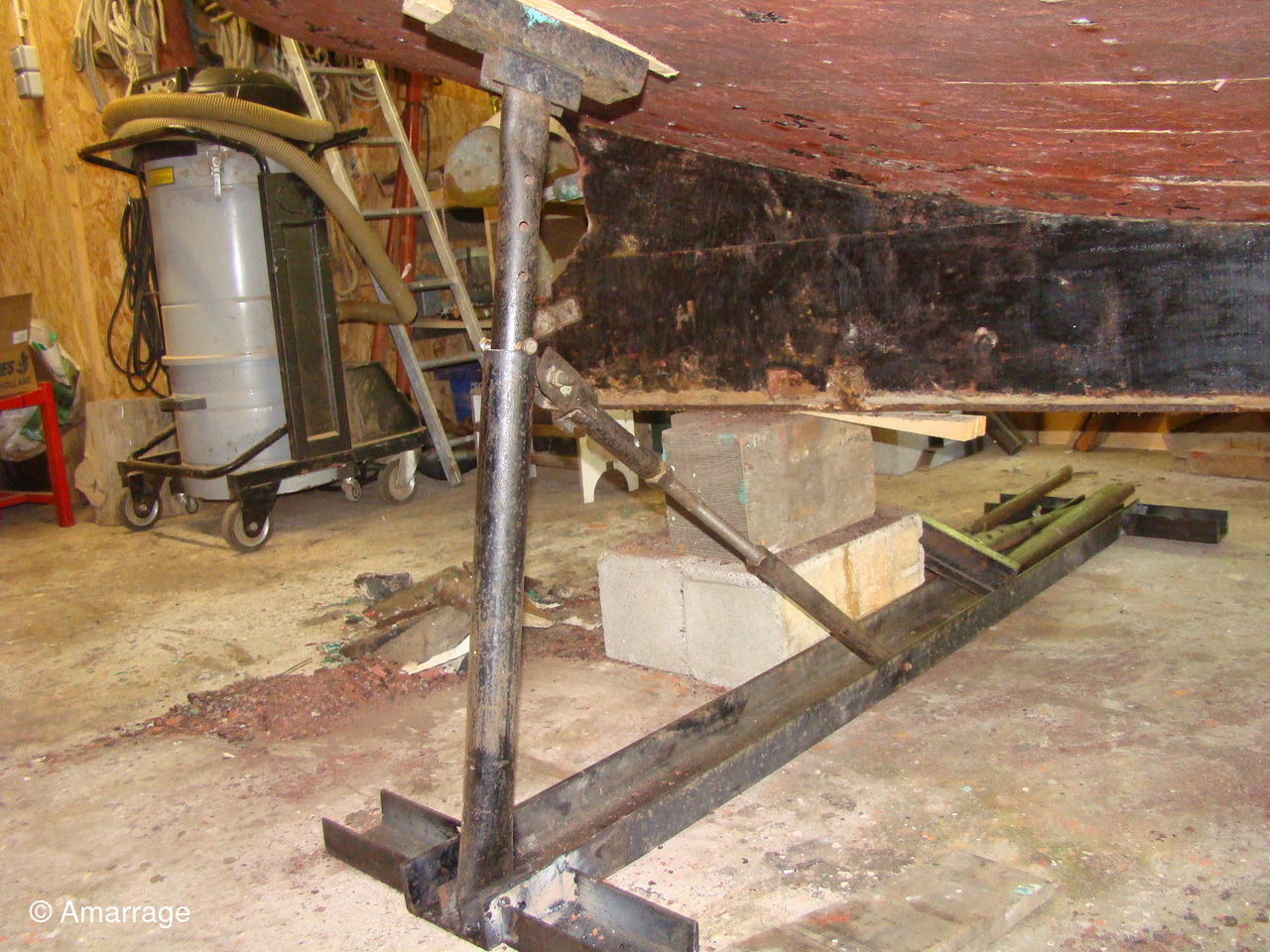 "SAINT POL": l'intérieur du bateau a été vidé et nettoyé. Fabrication d'un "ber" sur l'arrière pour renforcement.