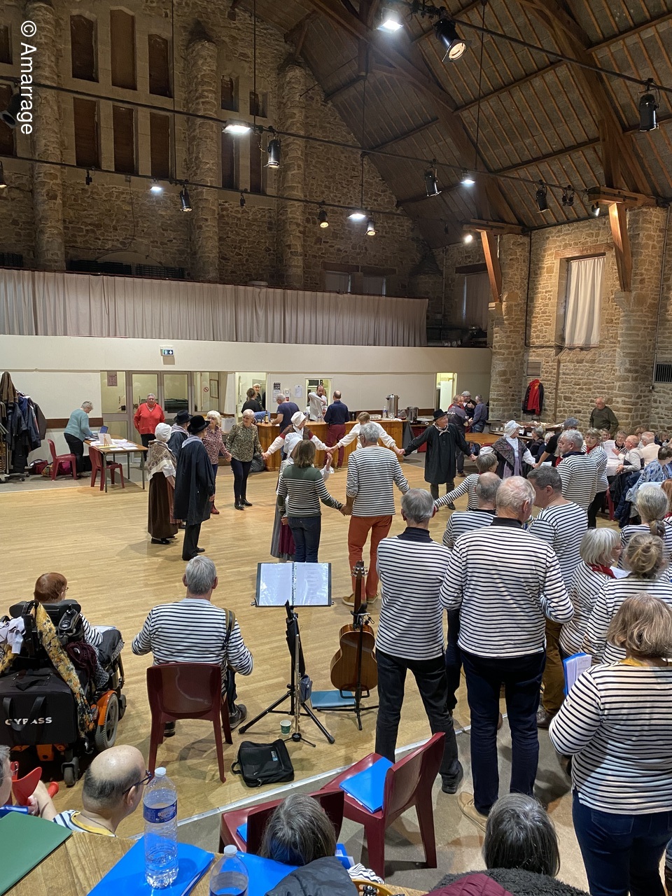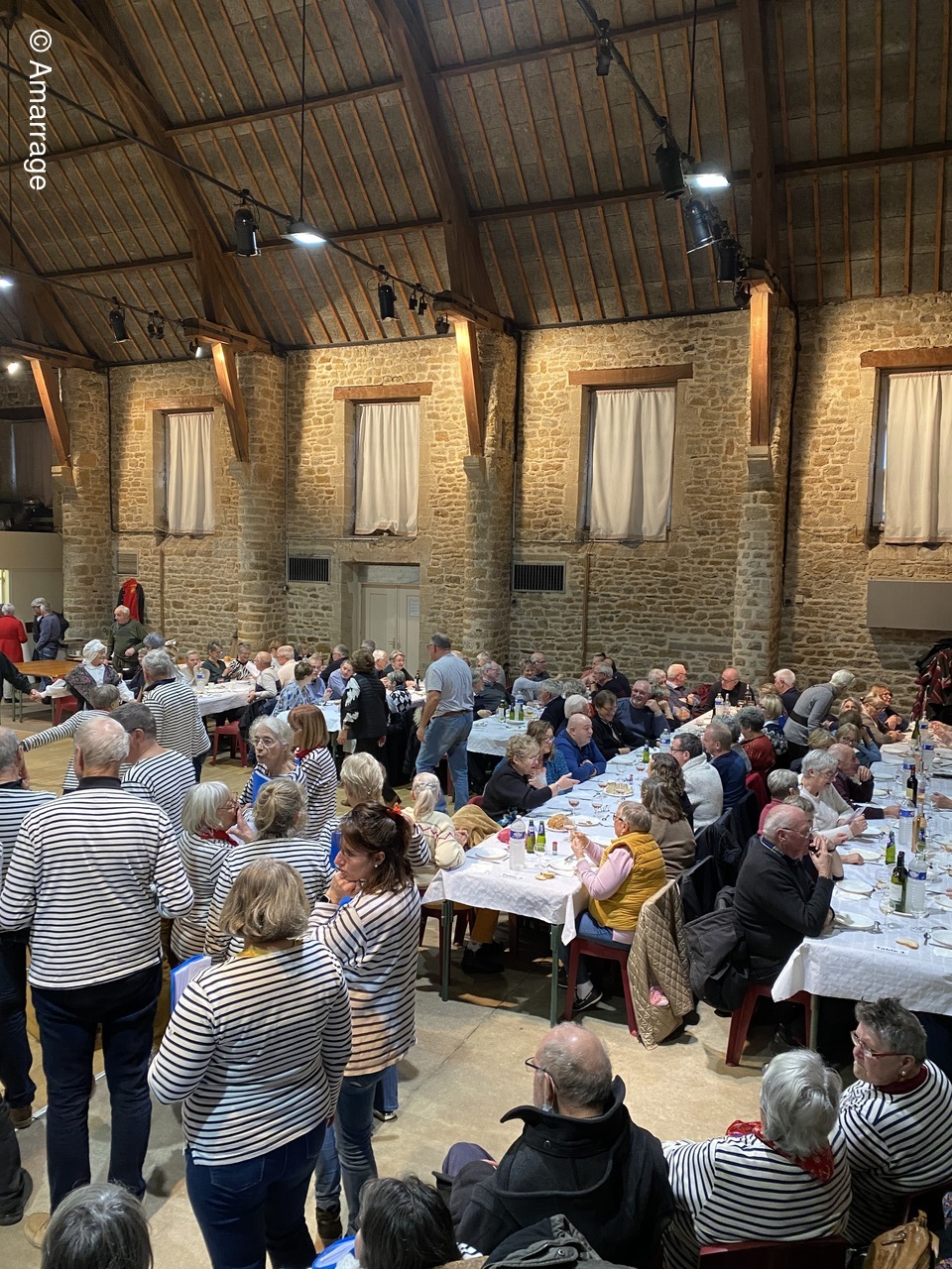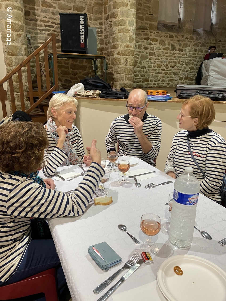 Après s'être restaurer par un très bon repas (différent pour chaque jour) nous avons accompagné par nos chants les convives qui étaient venus très nombreux (toutes les tables étaient remplies). Un moment de convivialité et de partage unique que chacun a vécu avec beaucoup d'intensité. Nous avons aussi été invité à danser en nous mêlant au groupe de danse normande.