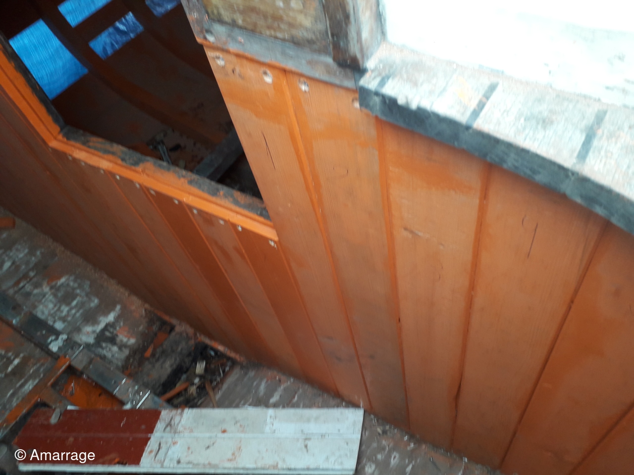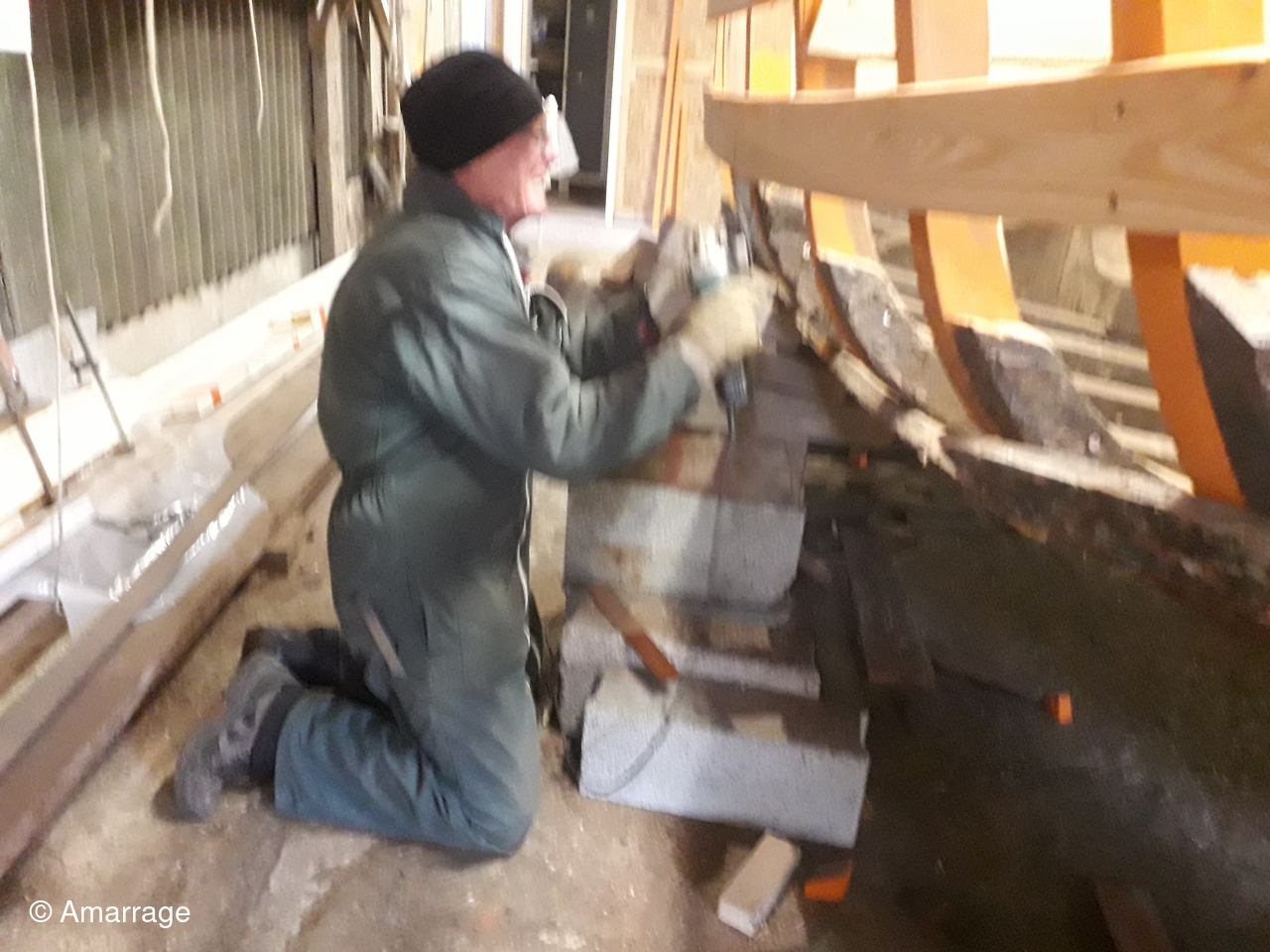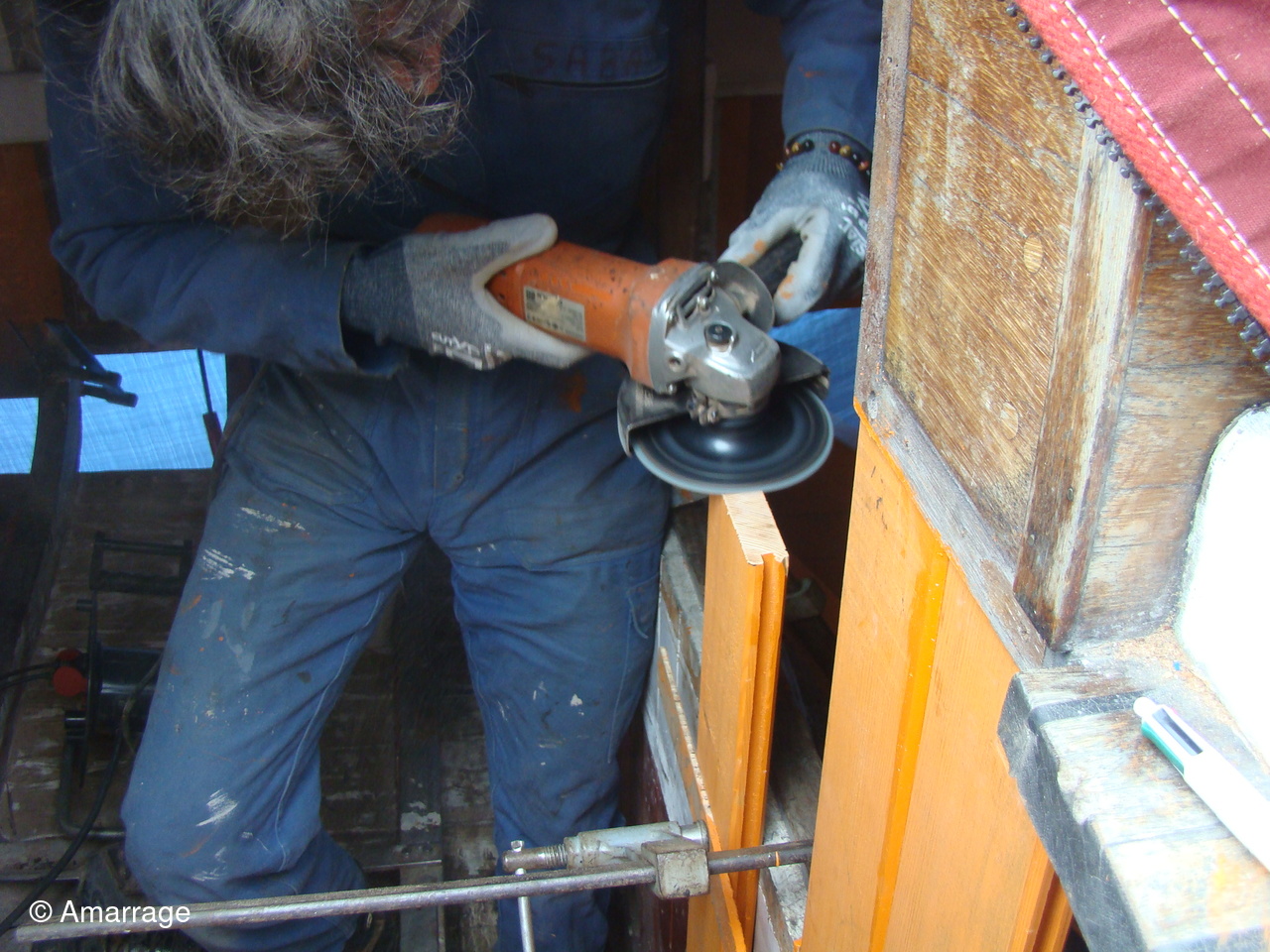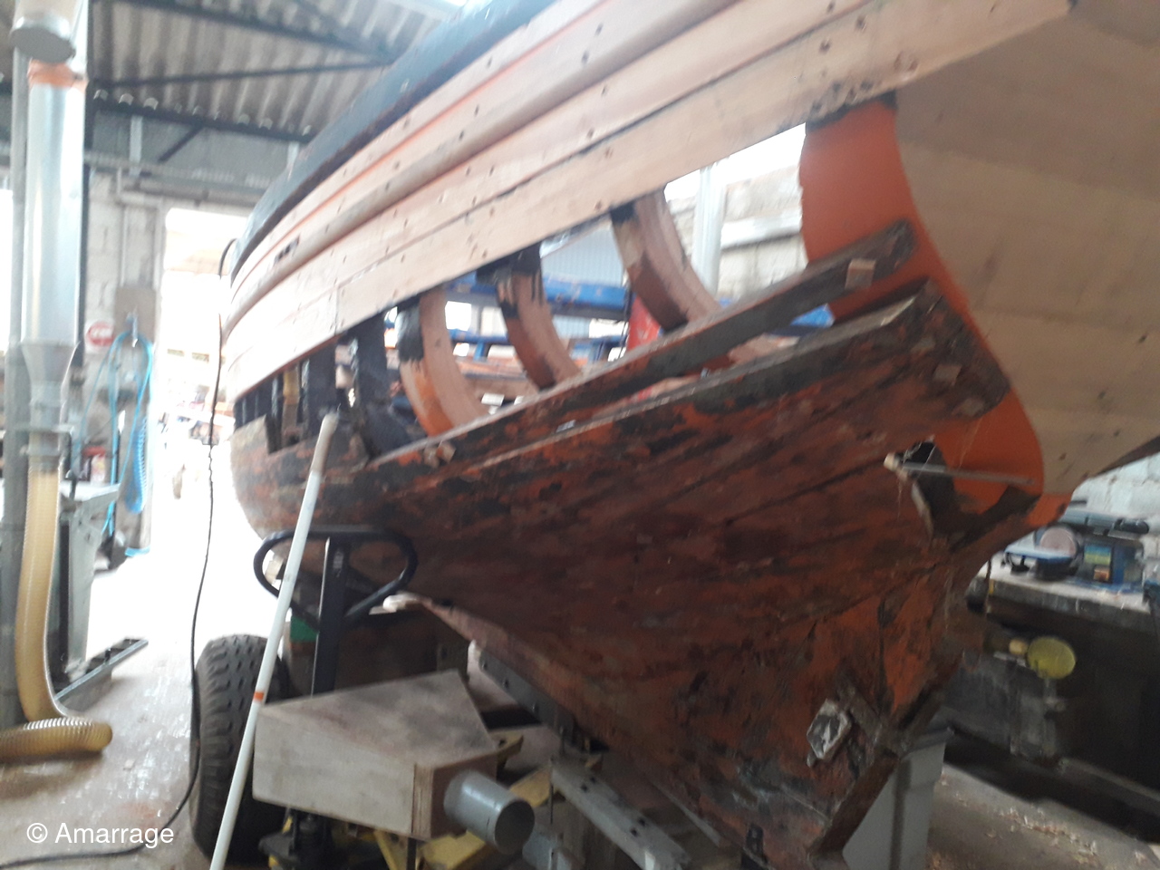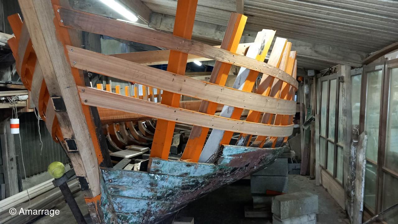 JOLIE BRISE: travail sur les membrures bâbord arrière et sur bordé sur tribord avant.
