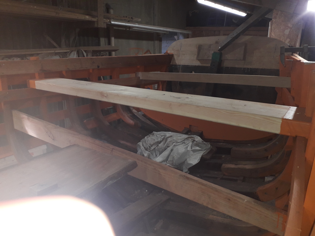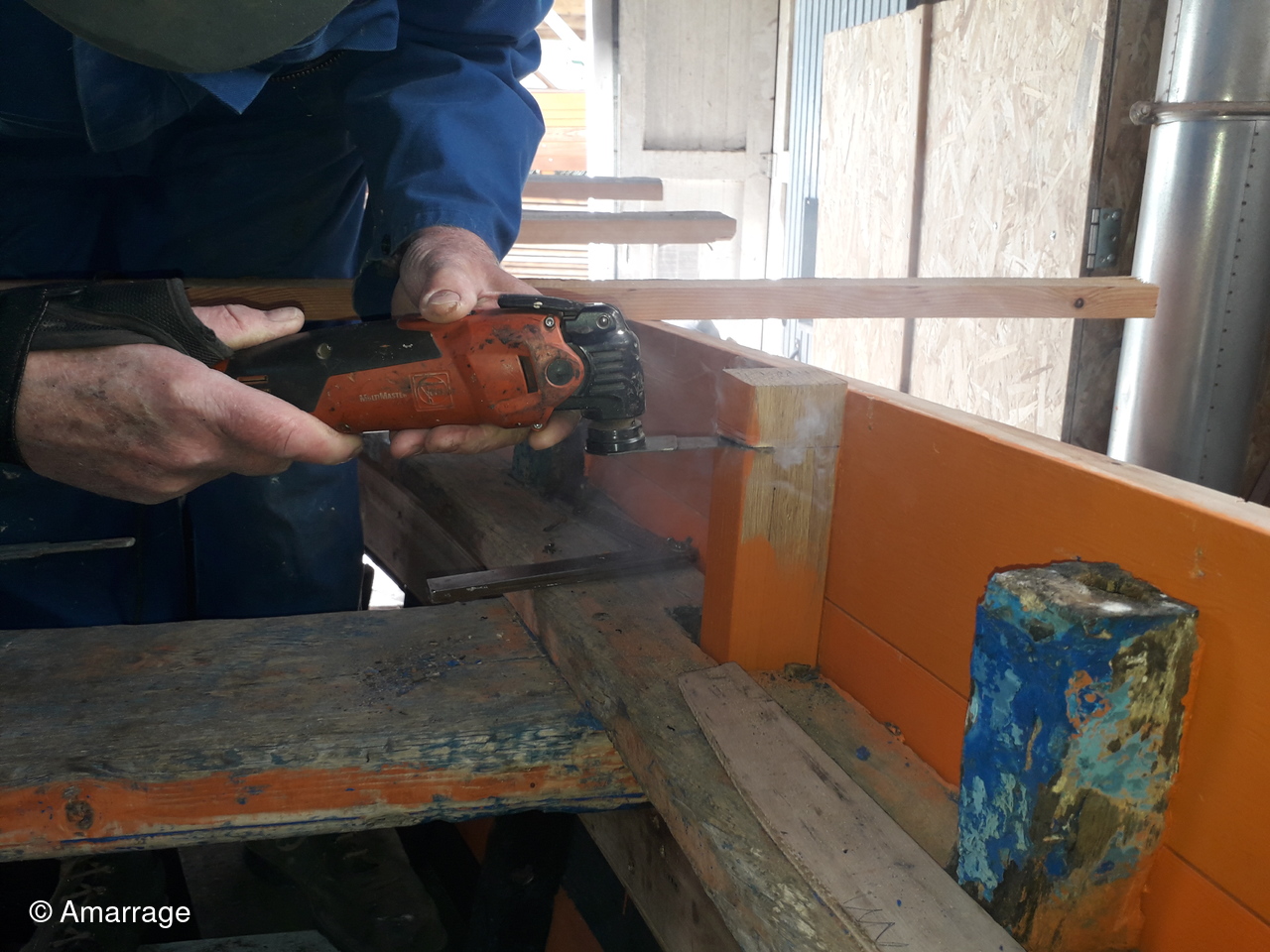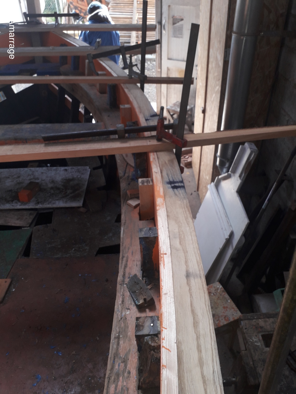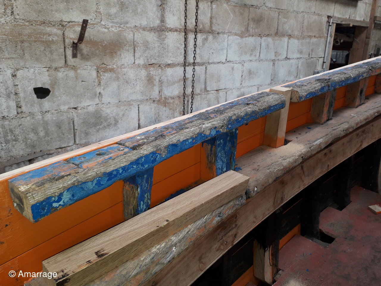 JOLIE BRISE: dépose des anciennes lisses de plat-bord et mise en chantier de nouvelles.