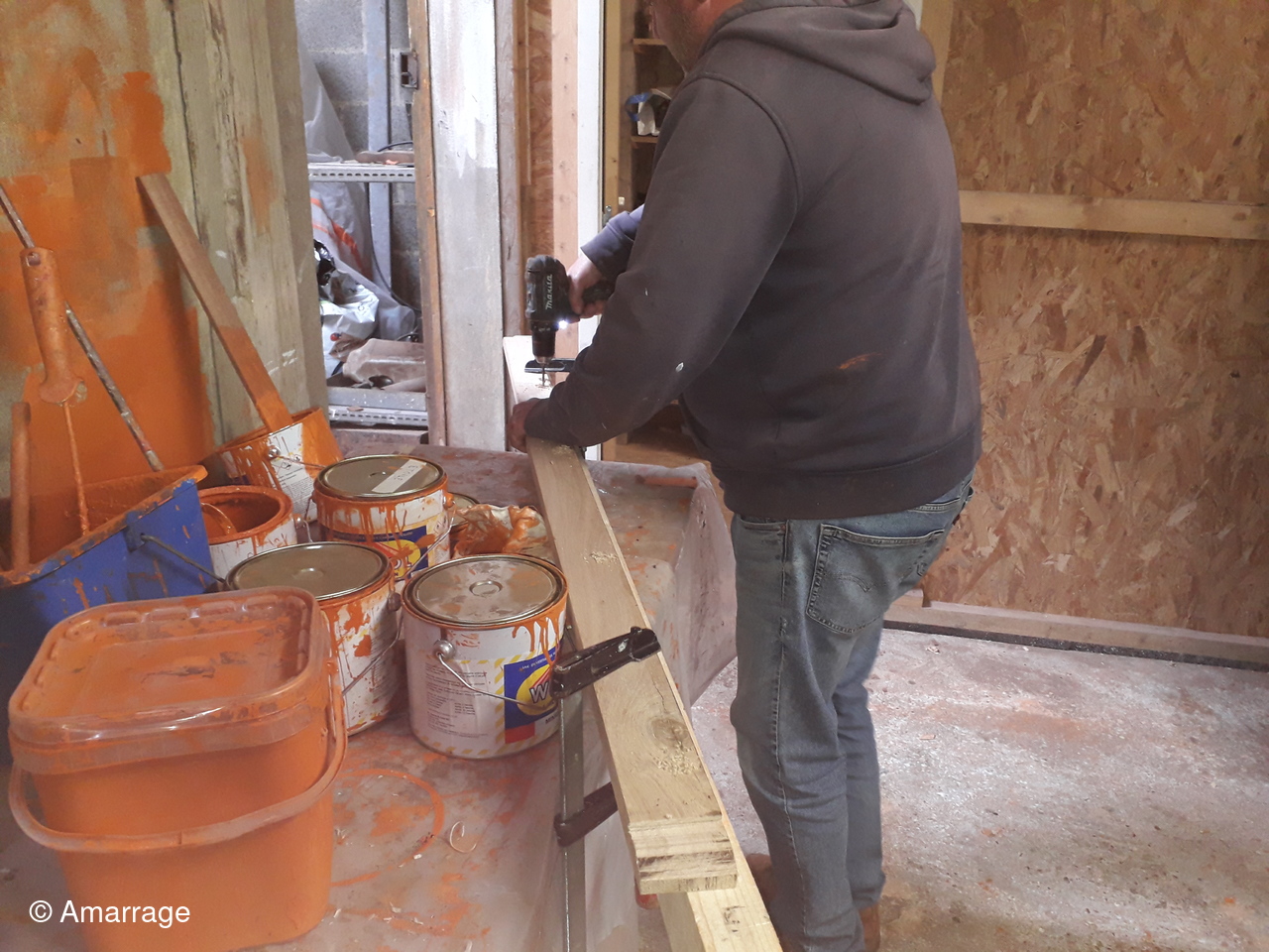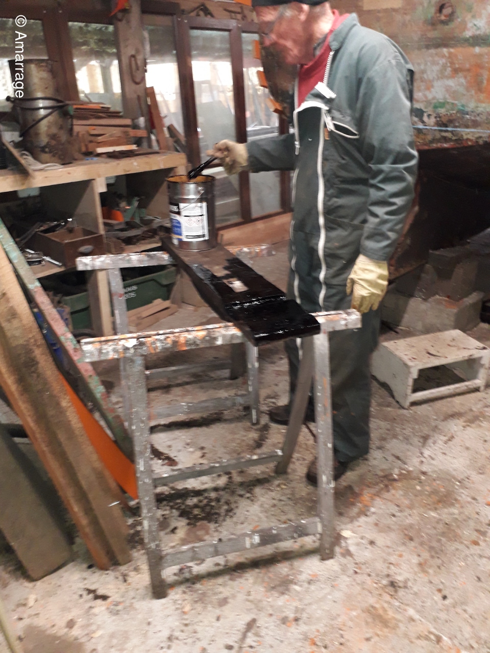 L'ETOILE: mise en peinture coque, grattage intérieur.