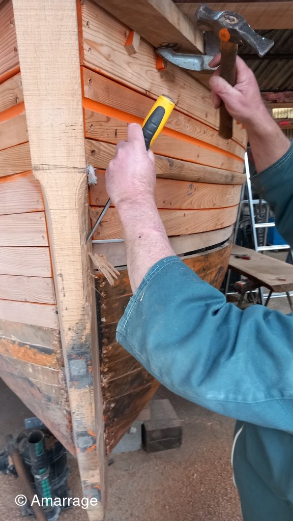 NEREÏDES: pose d'un bordé sur bâbord.