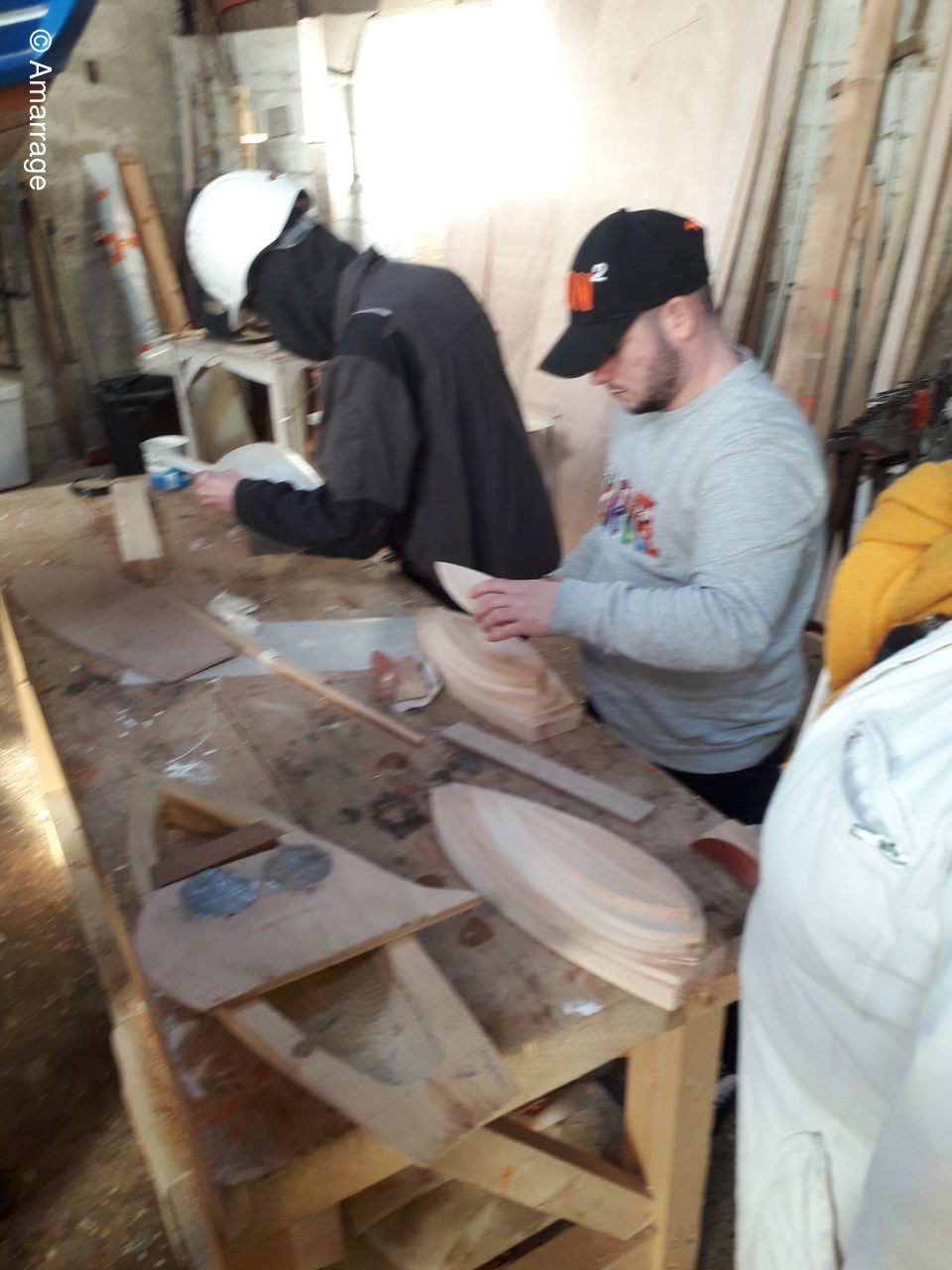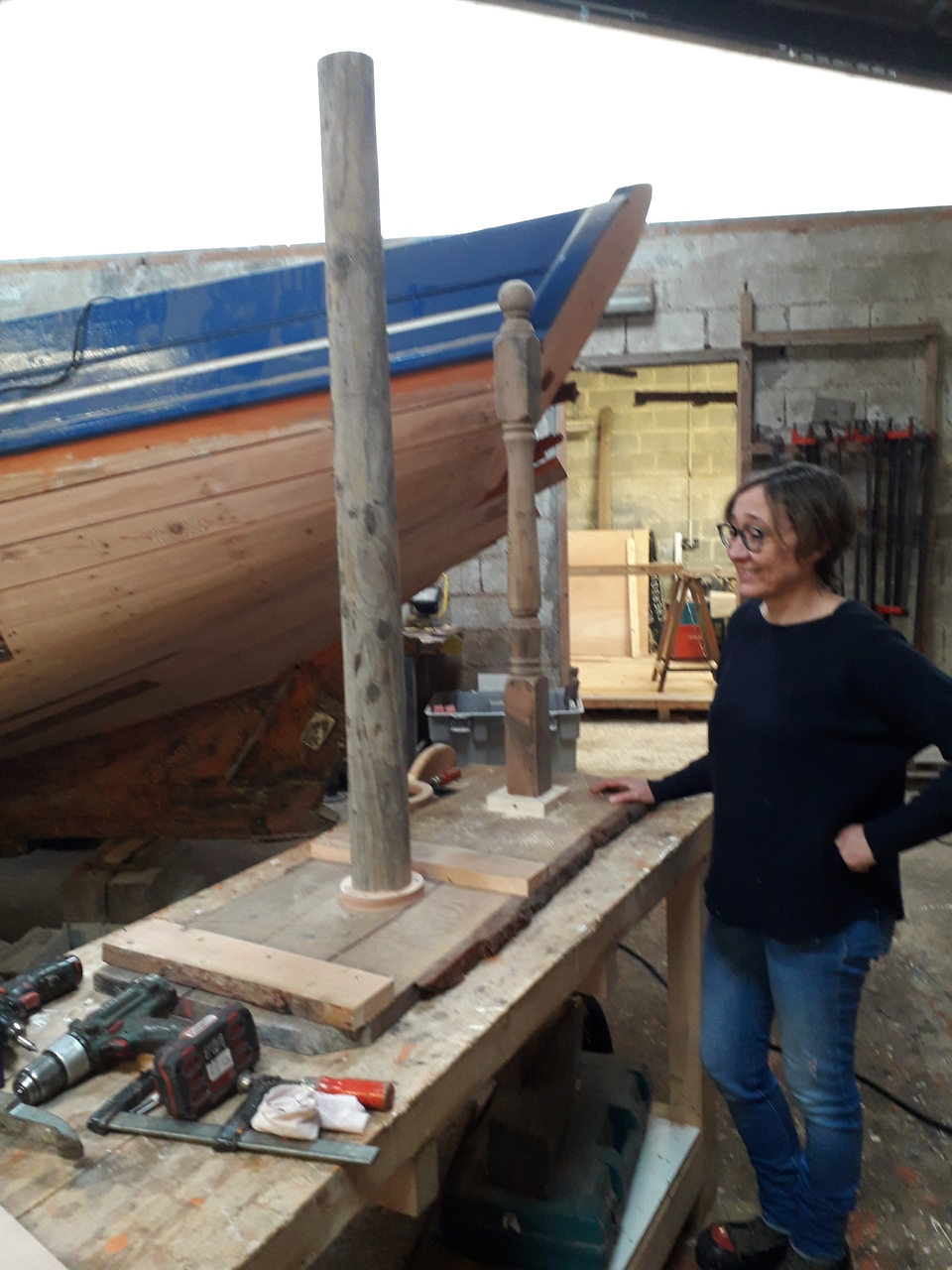 ATELIER: divers travaux -bateaux jouets- visite inatendue d'une possible adhérente pour la relève.
