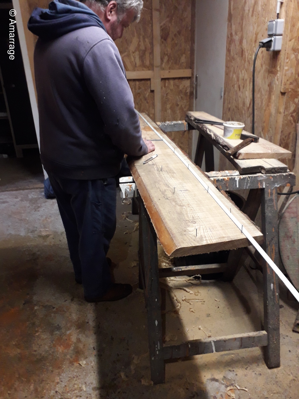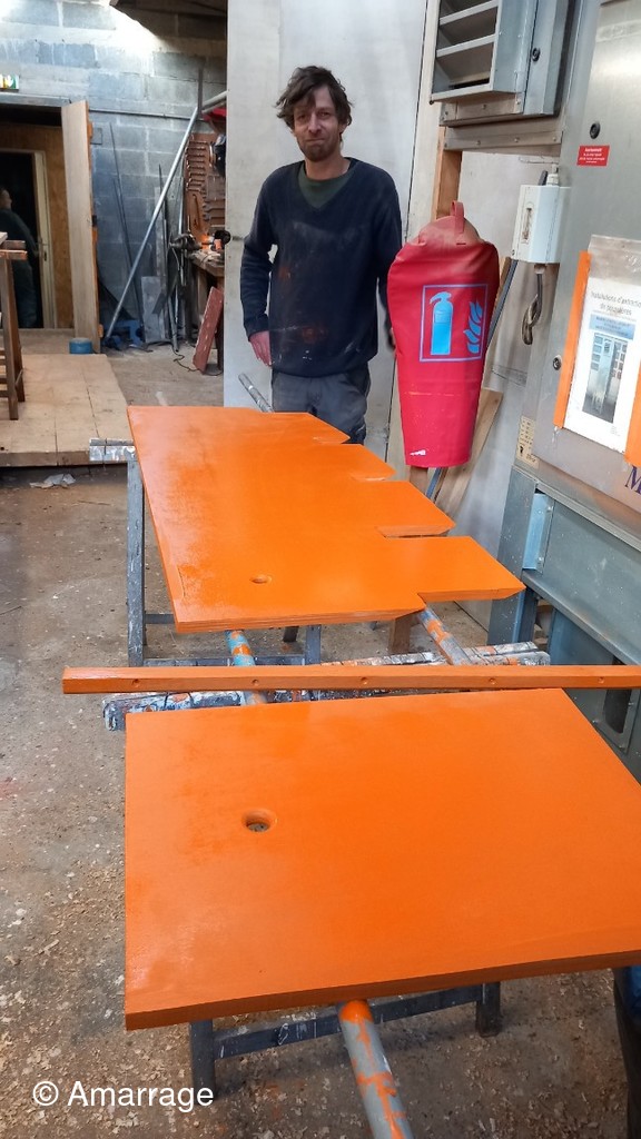 NEREÏDES: travail sur la lisse de plat bord - refait support de tableau électrique - plancher du roof - calfatage du tableau.