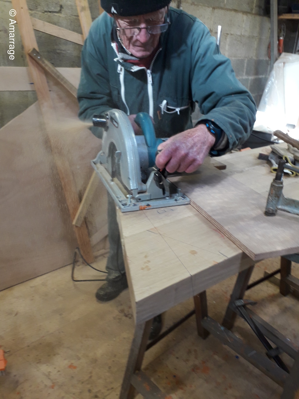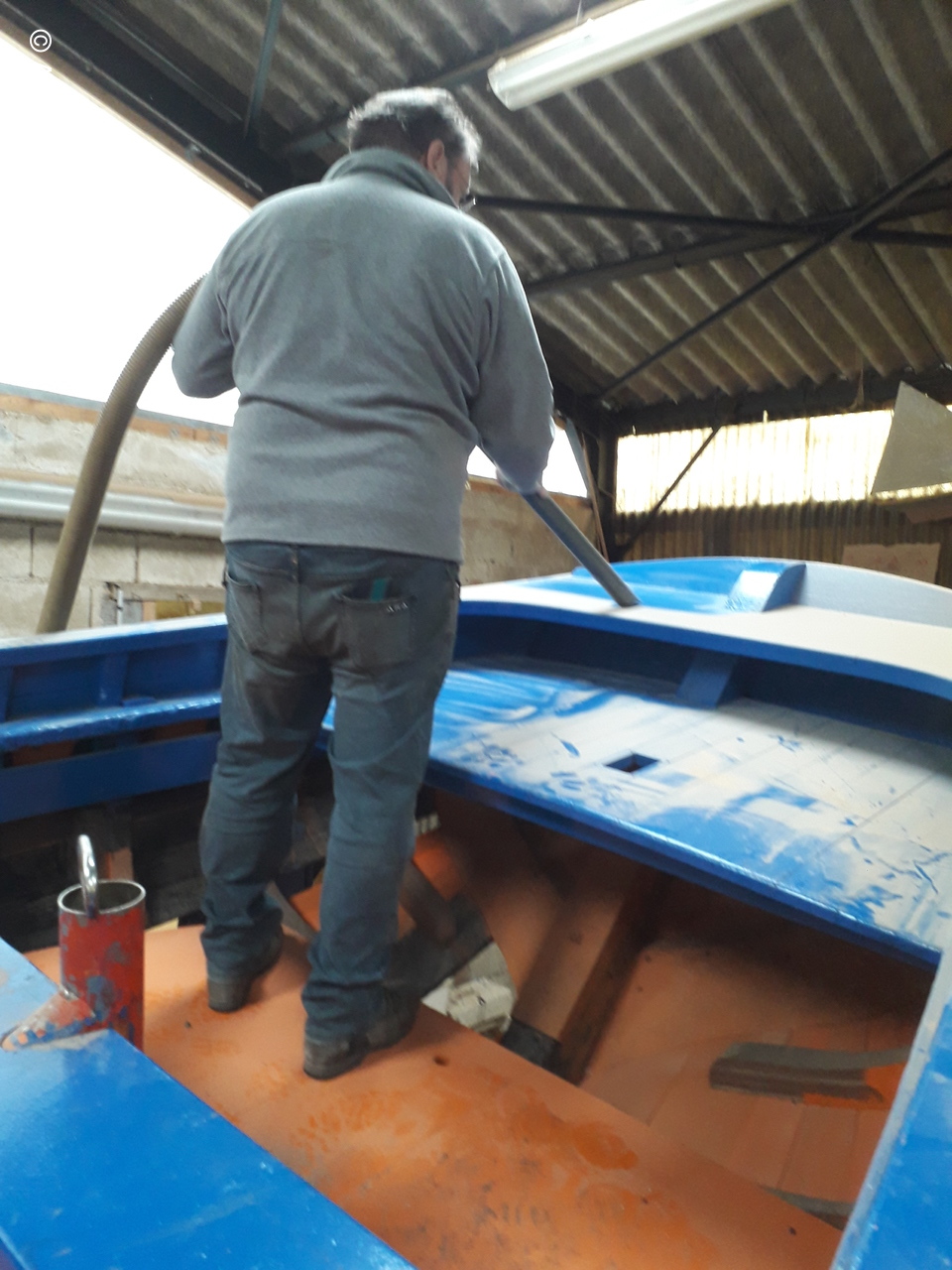 JOLIE BRISE: dépoussièrage - préparatifs au remplacement d'un bordé sur Tb arrière - positionnement bac à batterie.