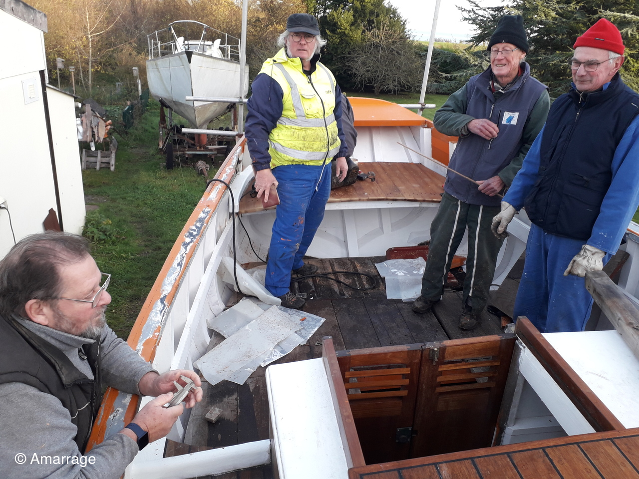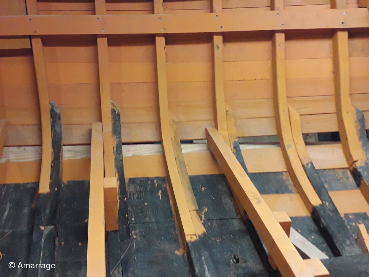NERËIDES: travail sur l'arrière, mise en place oreilles, marticage. travail à l'intérieur du rouf et fon,d dre cale.