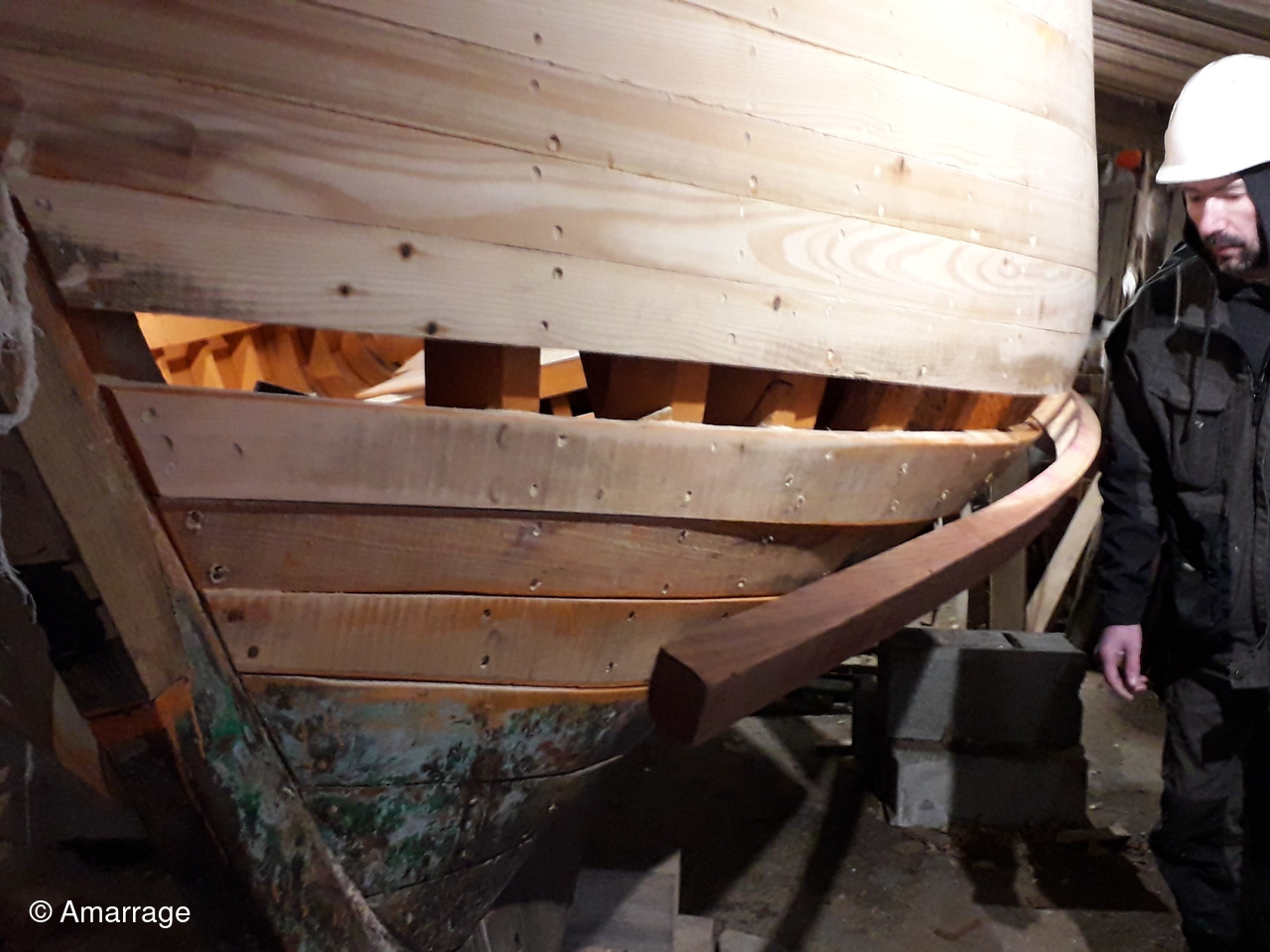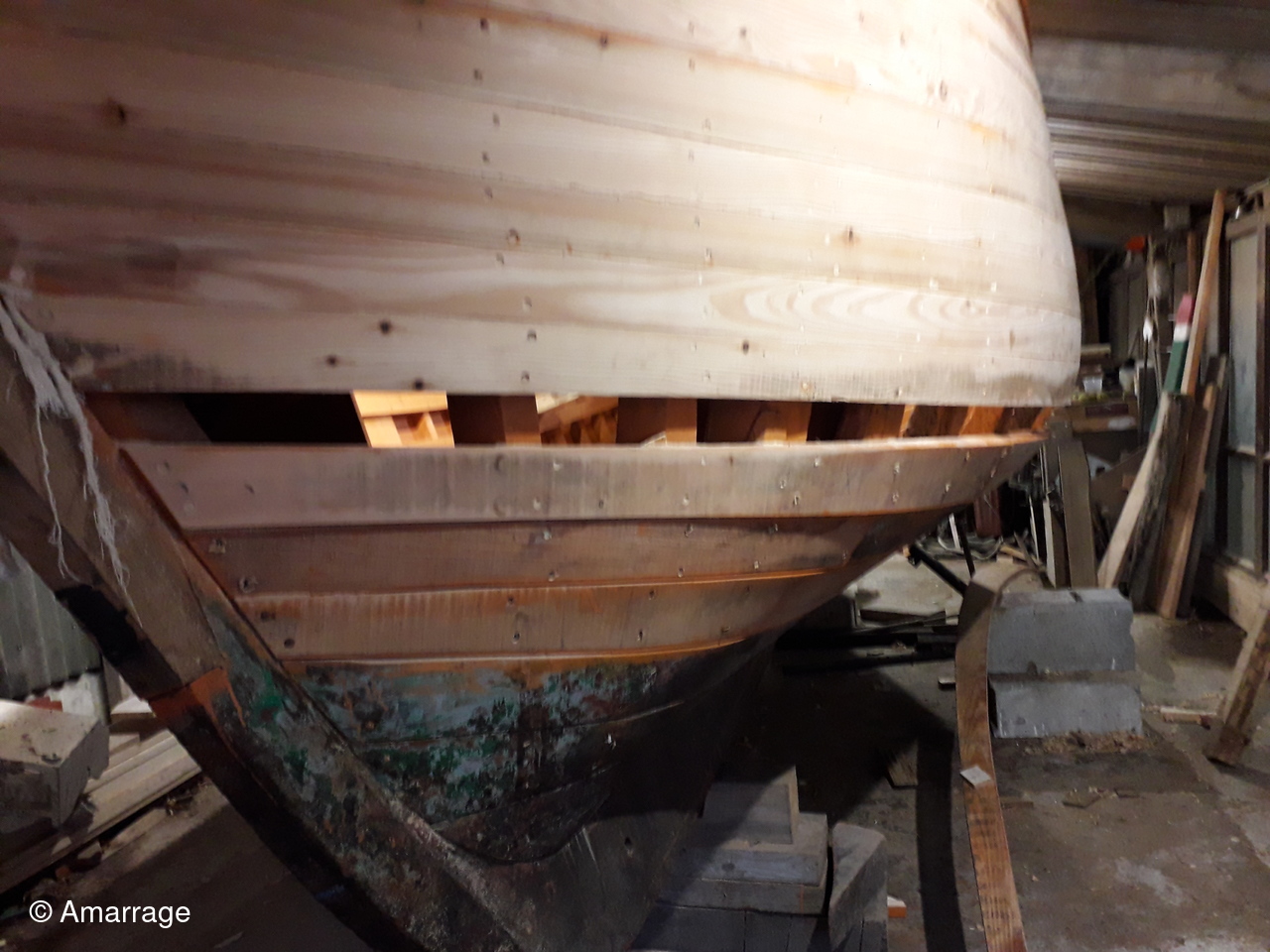 SAINT POL: sa coque est fermé. Mise en place d'un dernier bordé sur Bd