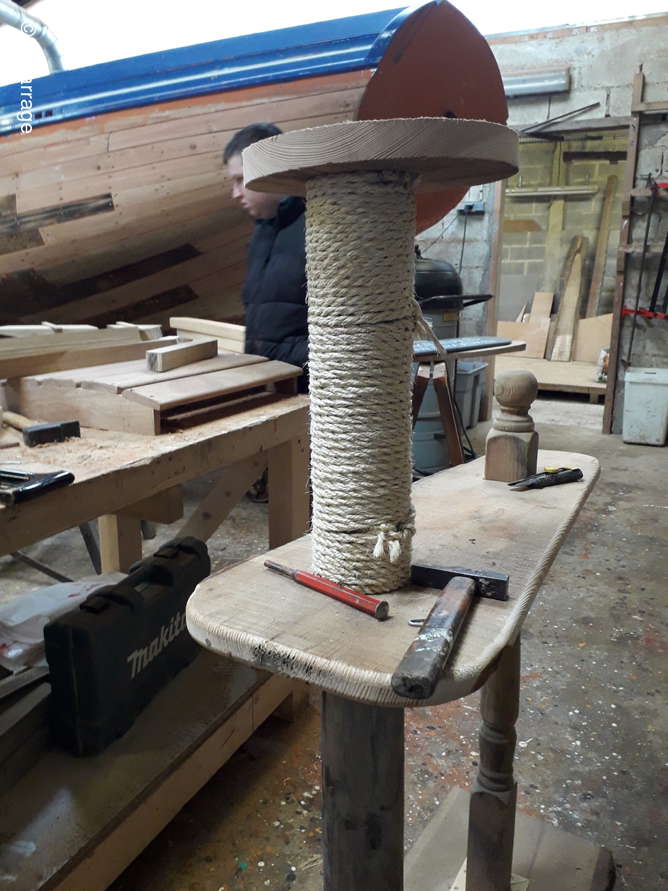 ATELIER: travail sur bateaux jouets - travail sur l'arbre à chats, avec confection de cordage.