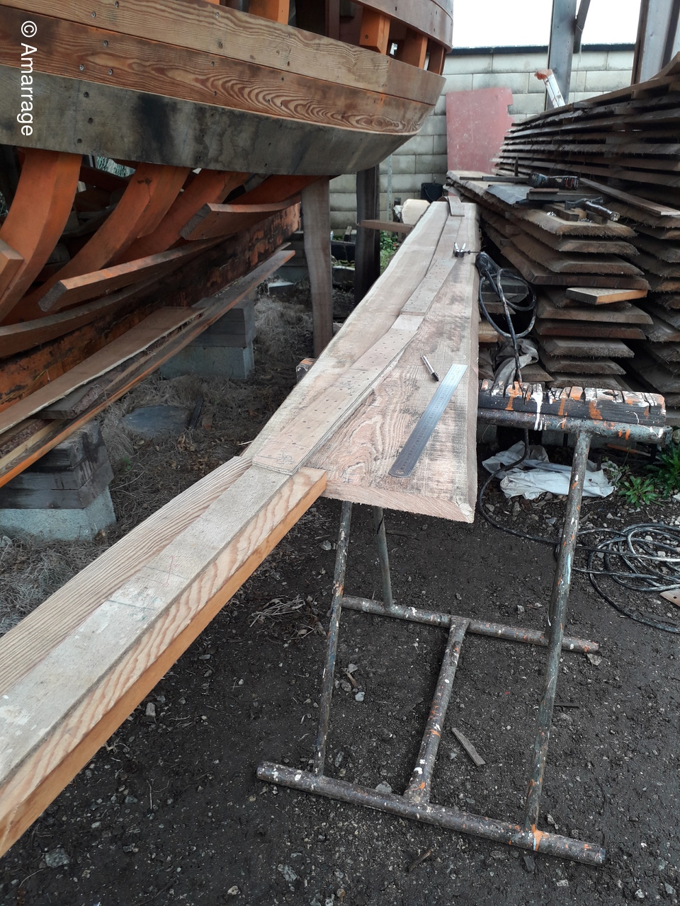 SAINT POL: la coque sur Bd est terminée -basculement sur Bd pour travailler la coque sur Tb - ponçage, mise en peinture - calfatage partie basse.