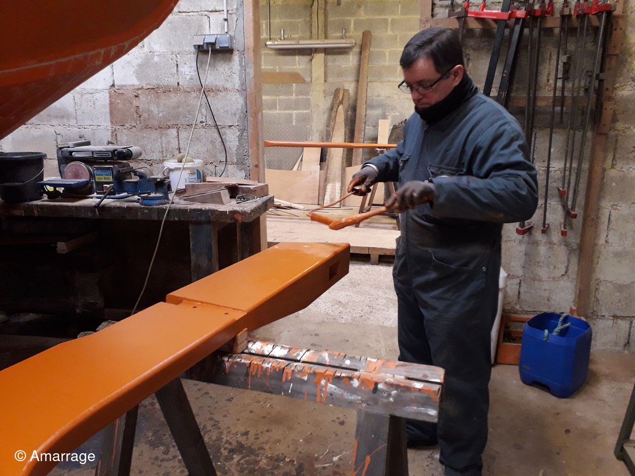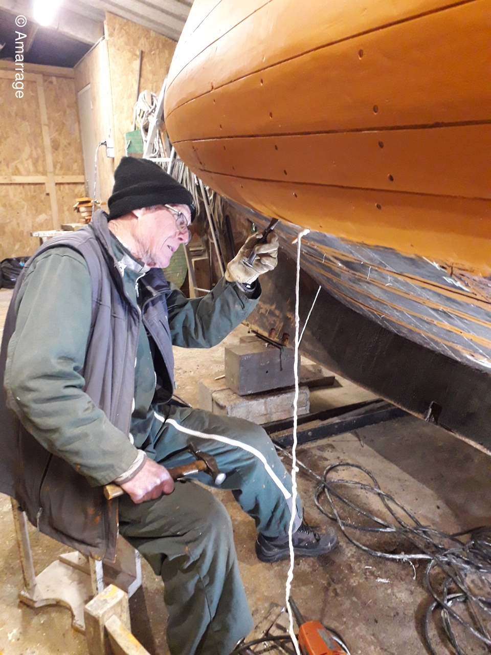 SAINT POL: calfatage bordés tribord - pinochage - fafication de 2 avirons - mignomage des bordés à mastiqué.